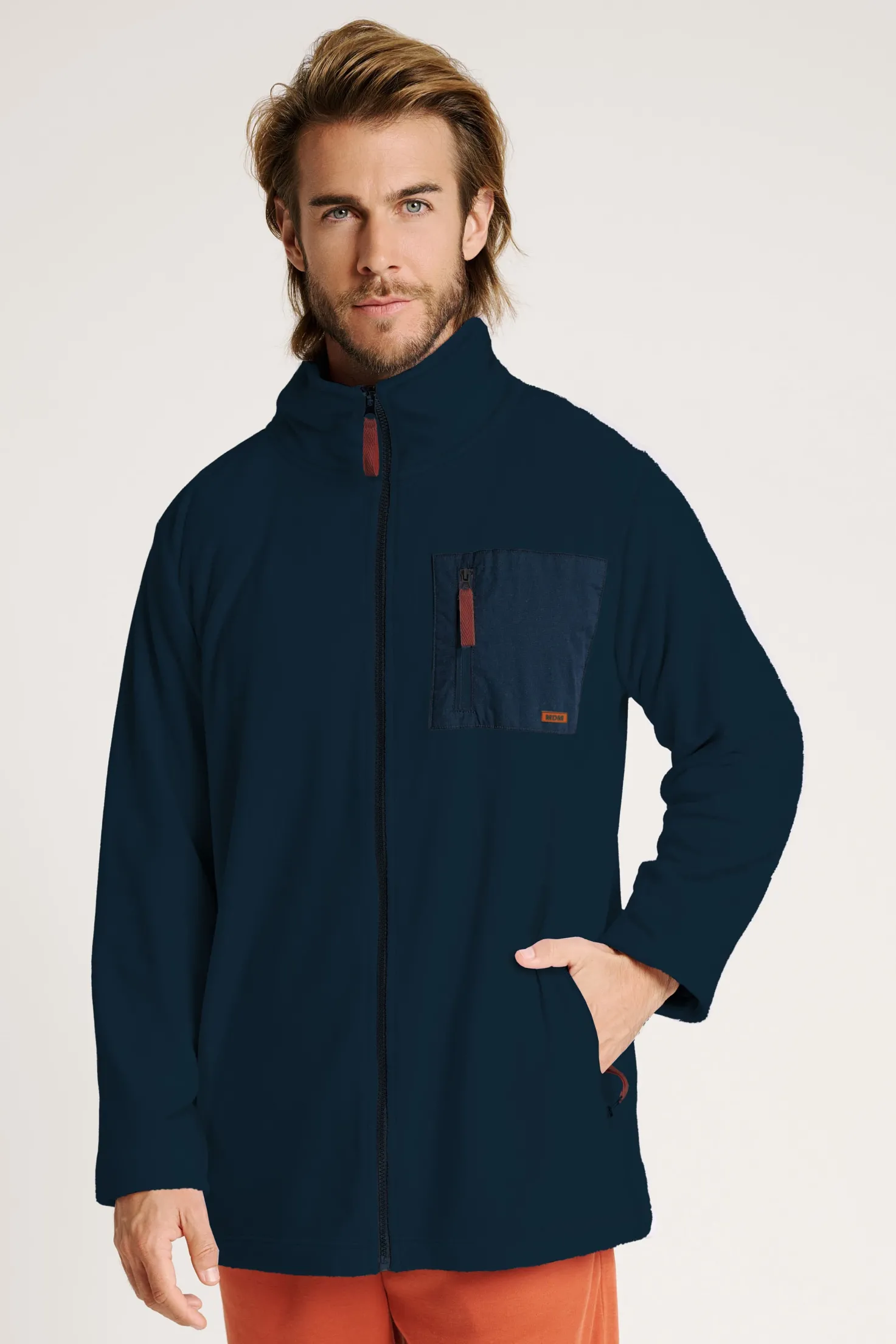 Bata polar de hombre con cremallera y bolsillo en el pecho