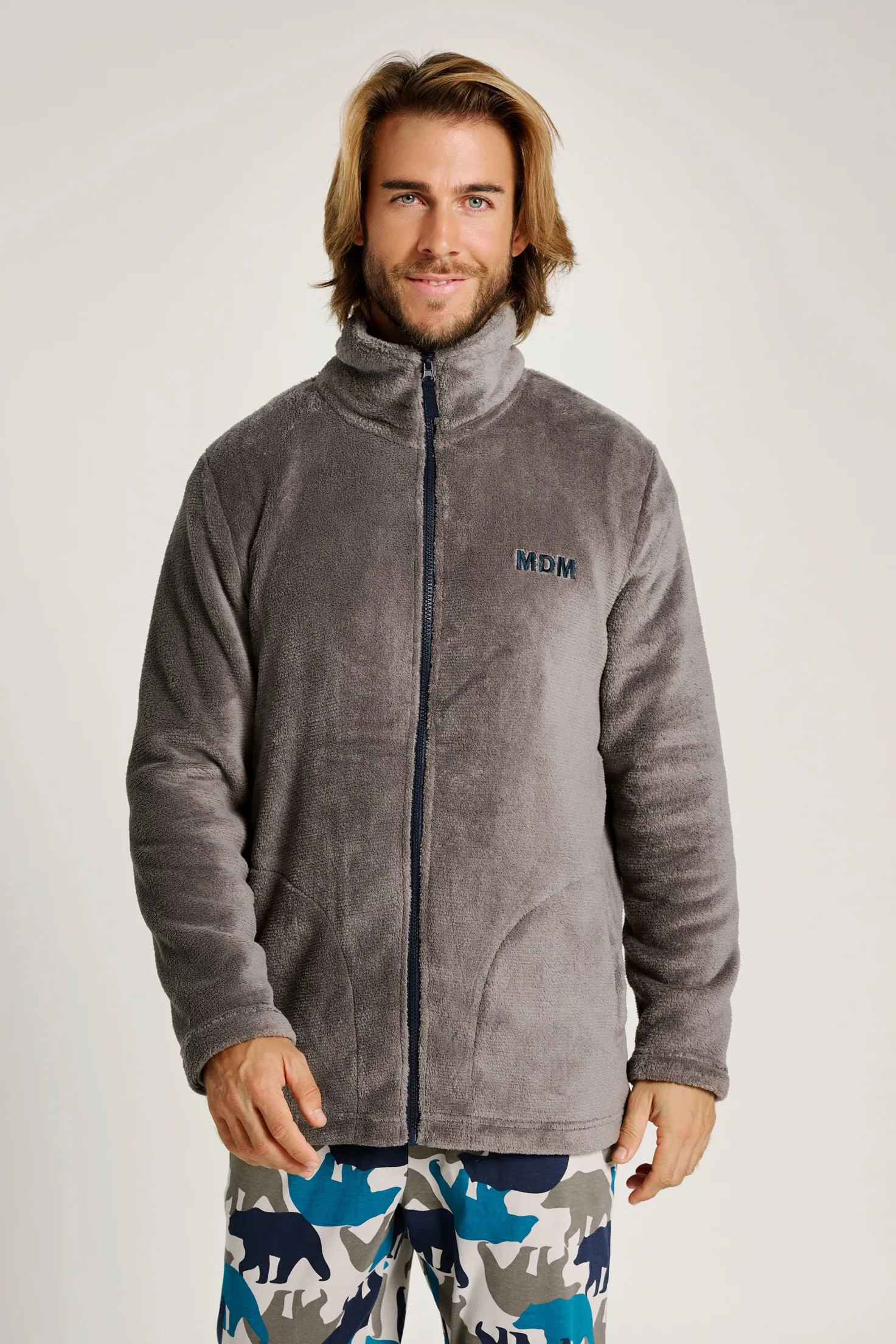 Esta bata polar de hombre es perfecta para abrigarte con total comodidad en los días fríos. Confeccionada en tejido extrasuave, ofrece una sensación envolvente y ligera. Su diseño incluye cierre completo con cremallera, bolsillos laterales integrados y un discreto bordado “MDM” en el pecho que aporta un toque moderno y distintivo.