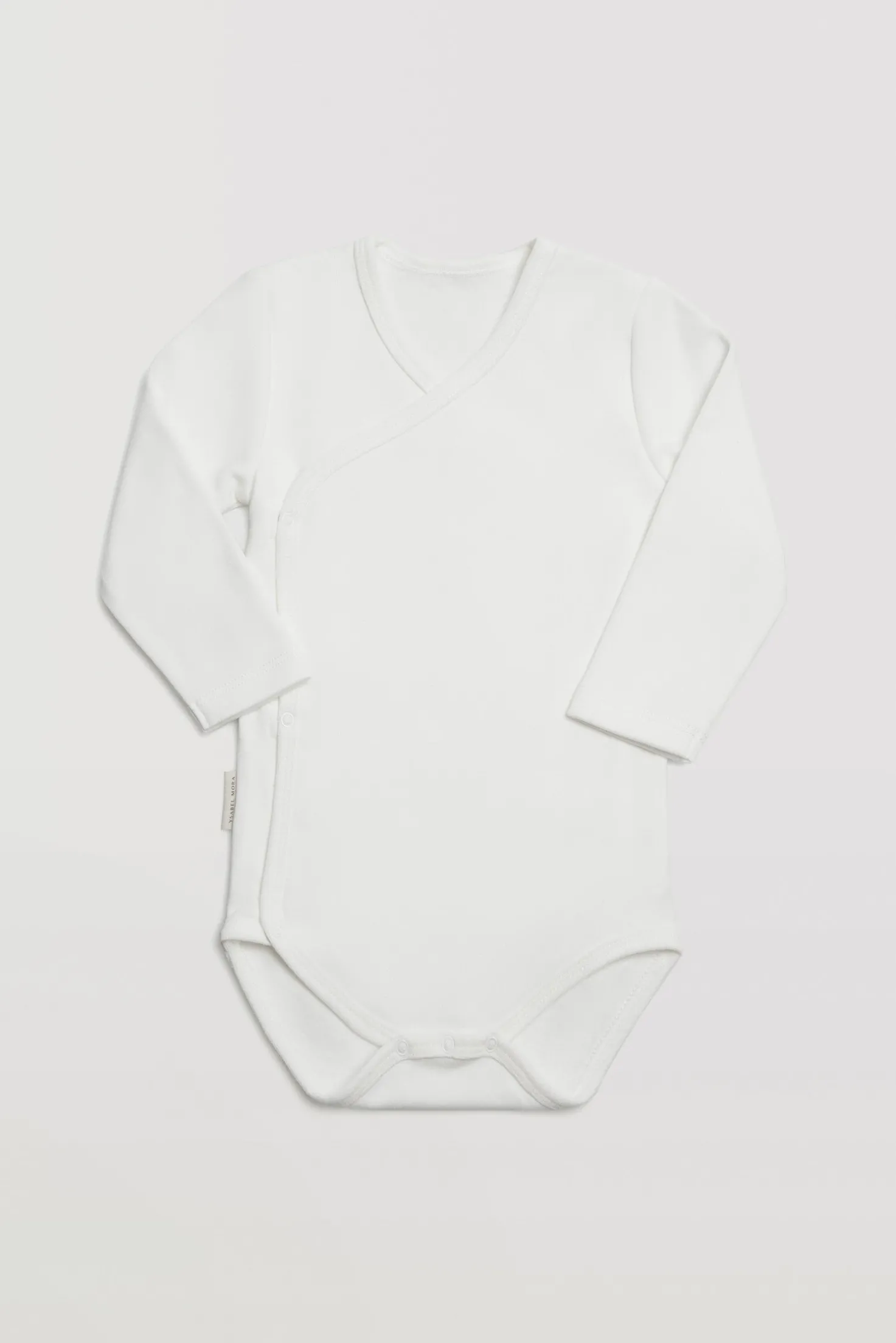 Body de bebé de manga larga con algodón natural. De estilo cruzado, con cuello pico. Prenda confeccionada en un tejido suave y agradable gracias a su interior afelpado. Color blanco.