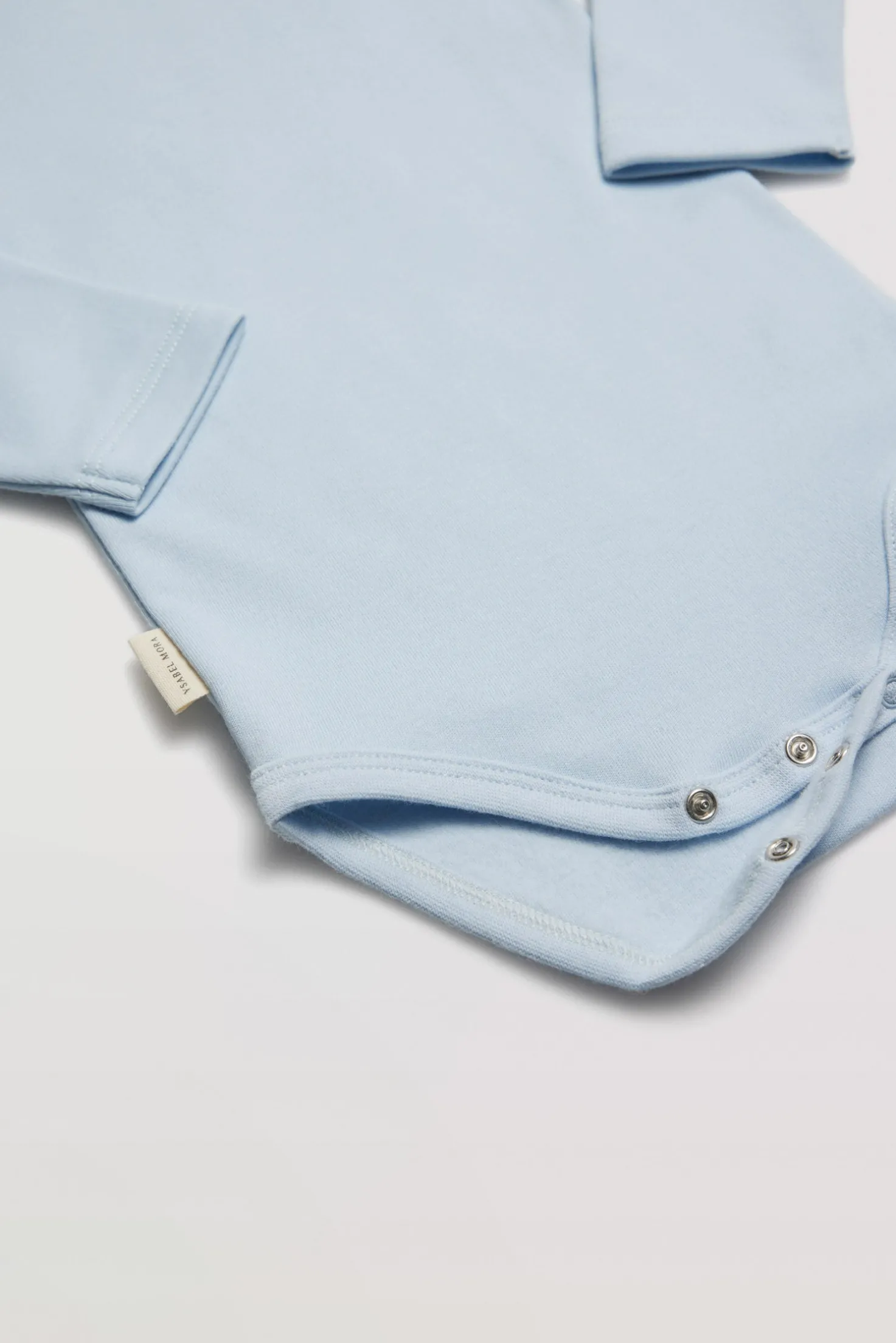 Body de bebé de manga larga con algodón natural. Prenda confeccionada en un tejido suave y agradable gracias a su interior afelpado. Color azul celeste.