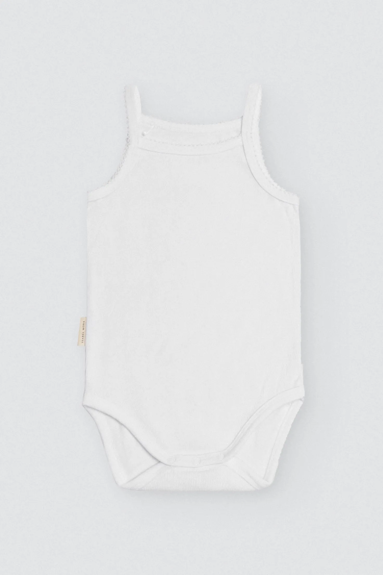 Body básico de tirantes para bebé. Diseño liso unisex con botones a presión en la entrepierna. Tirantes finos, perfectos para verano. Confeccionado con algodón 100% natural, material que es suave y transpirable. Color blanco. ¡Esta prenda no puede faltar en el armario de tu bebé!