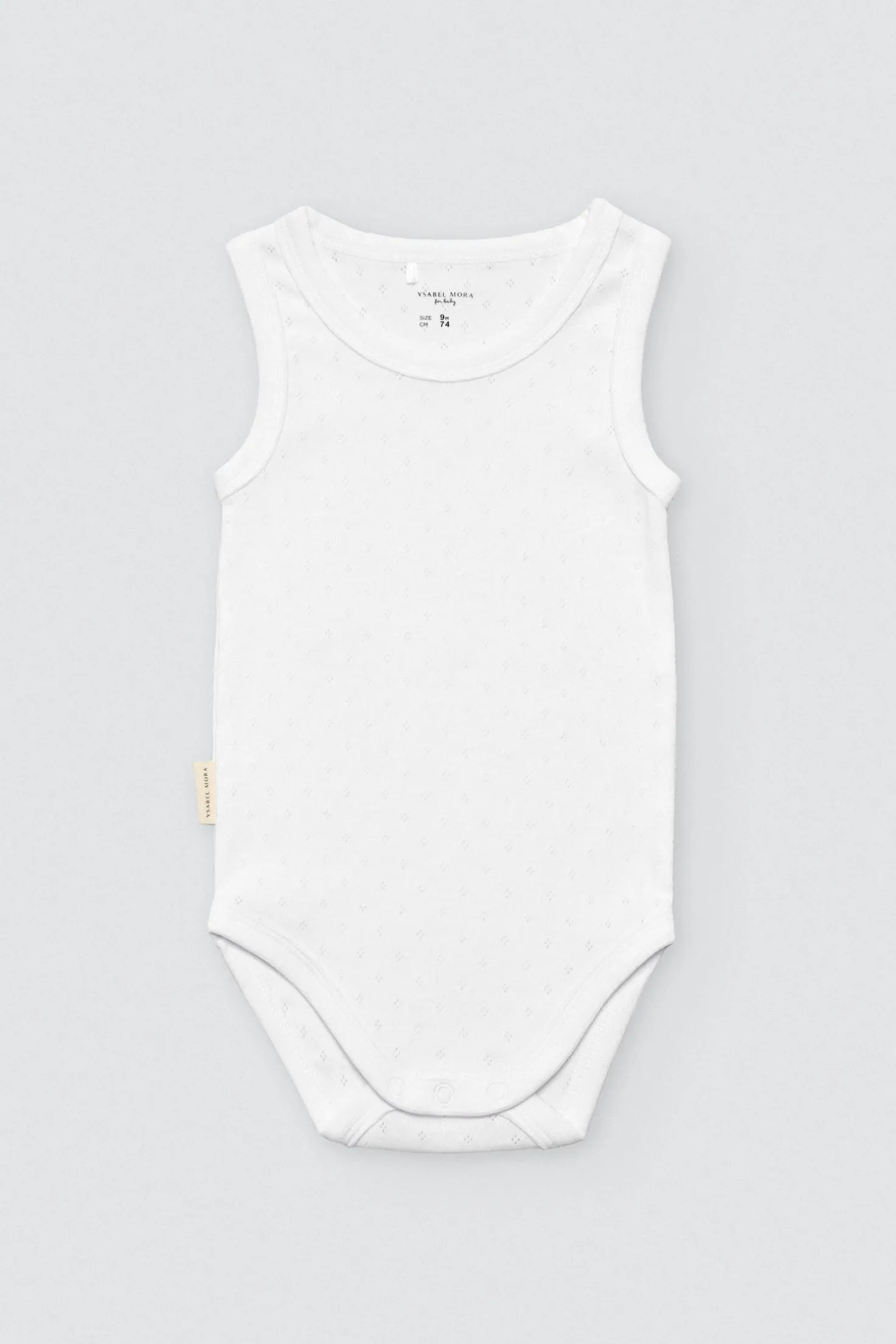 Body básico de tirantes anchos para bebé. Diseño unisex, calado y blanco, con botones a presión en la entrepierna. Tirantes anchos para ofrecer una mayor sujección al bebé. Confeccionado con algodón 100% natural, material que es suave y transpirable. ¡Esta prenda no puede faltar en el armario de tu bebé!
