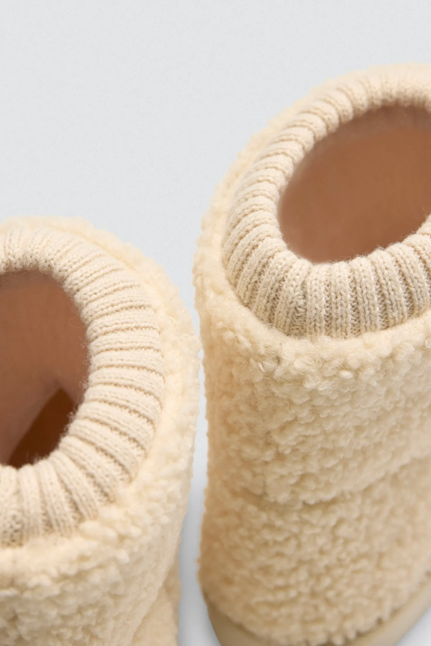 Estos botines de casa están diseñados para ofrecerte la máxima comodidad y calidez. El exterior de borreguito proporciona una textura suave y cálida, mientras que el cierre ajustado de canalé en la parte superior asegura un ajuste perfecto alrededor del tobillo, evitando deslizamientos y ofreciendo una mayor sujeción.