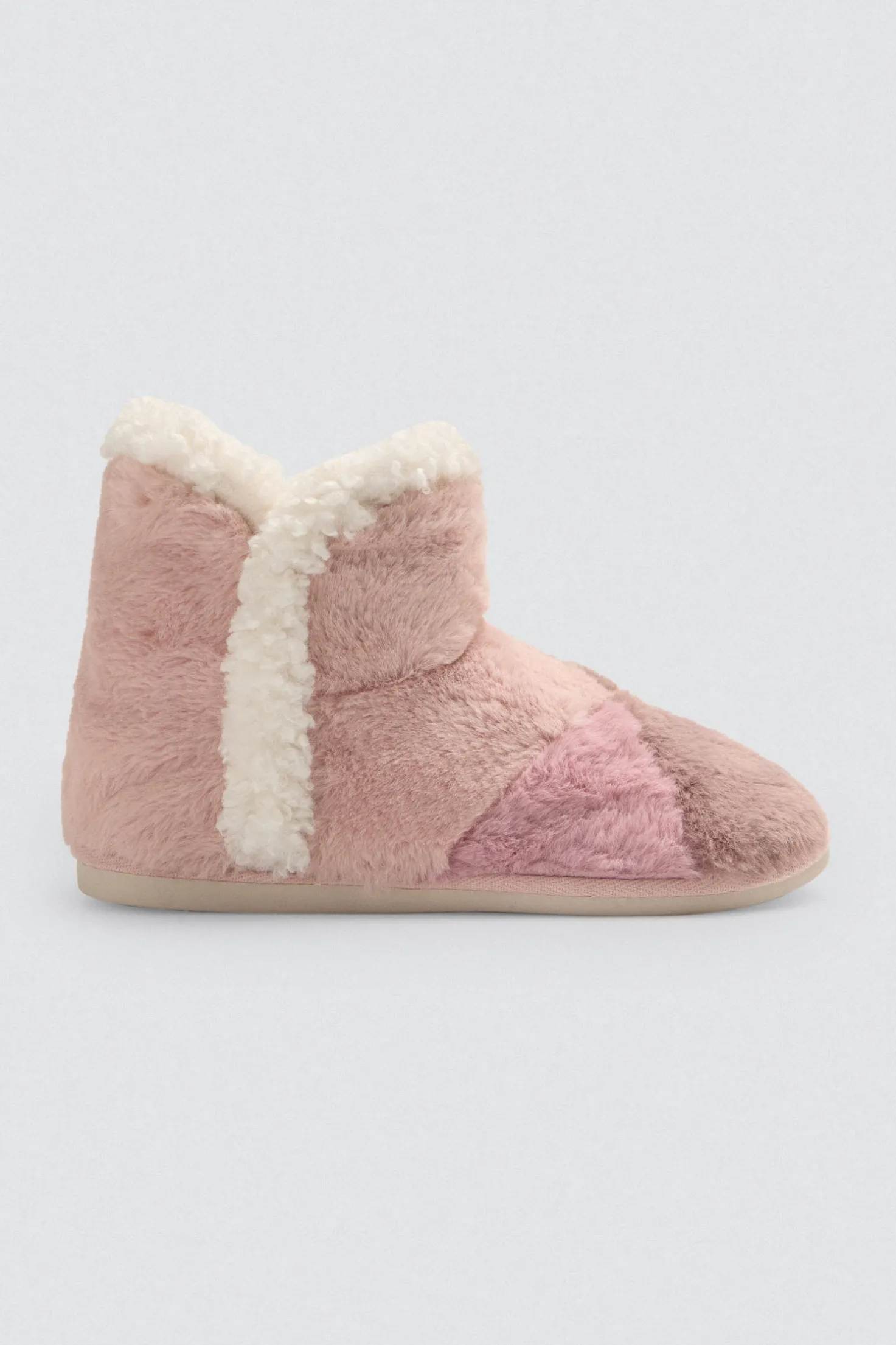 Botines de casa con pelo y combinación de colores