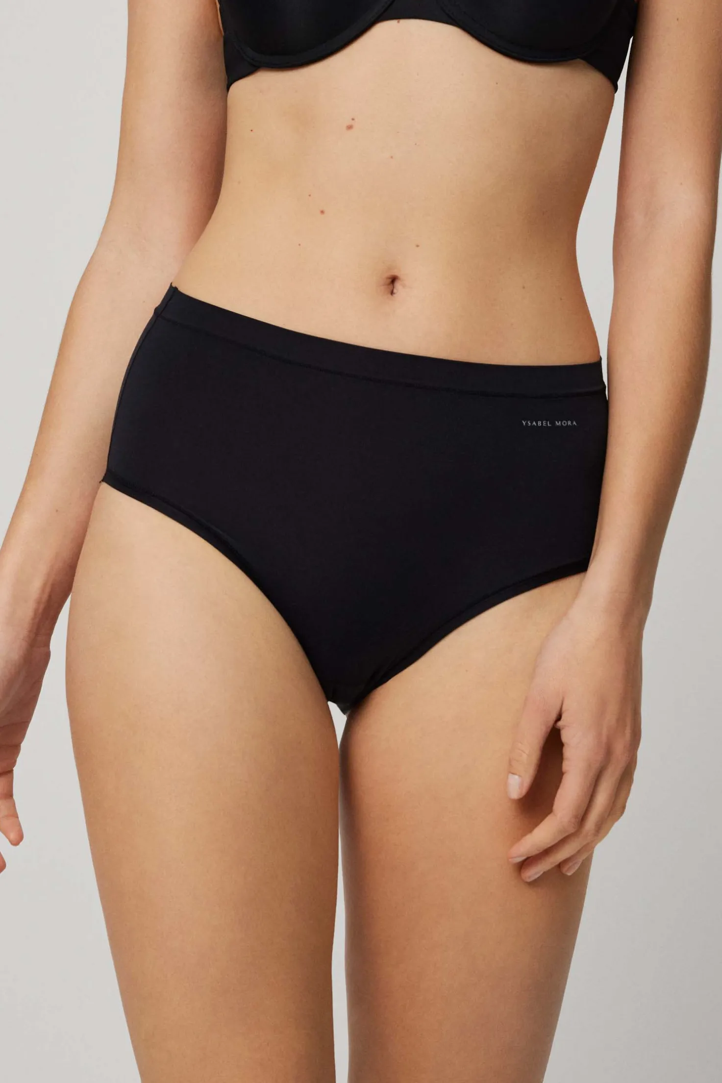 Essentials adapt. Braga alta elástica que se adapta al cuerpo y cubre hasta la cintura. Su elasticidad permite que se adapte a cualquier tipo de silueta con amplitud de tallas, desde la S hasta la XL. Sus acabados invisibles la hacen ideal para usar debajo de ropa ajustada al cuerpo sin que se note. Esto crea una braguita con aspecto más suave y elegante, sin la apariencia de bultos o líneas visibles. ¡Una versátil prenda para cualquier ocasión!