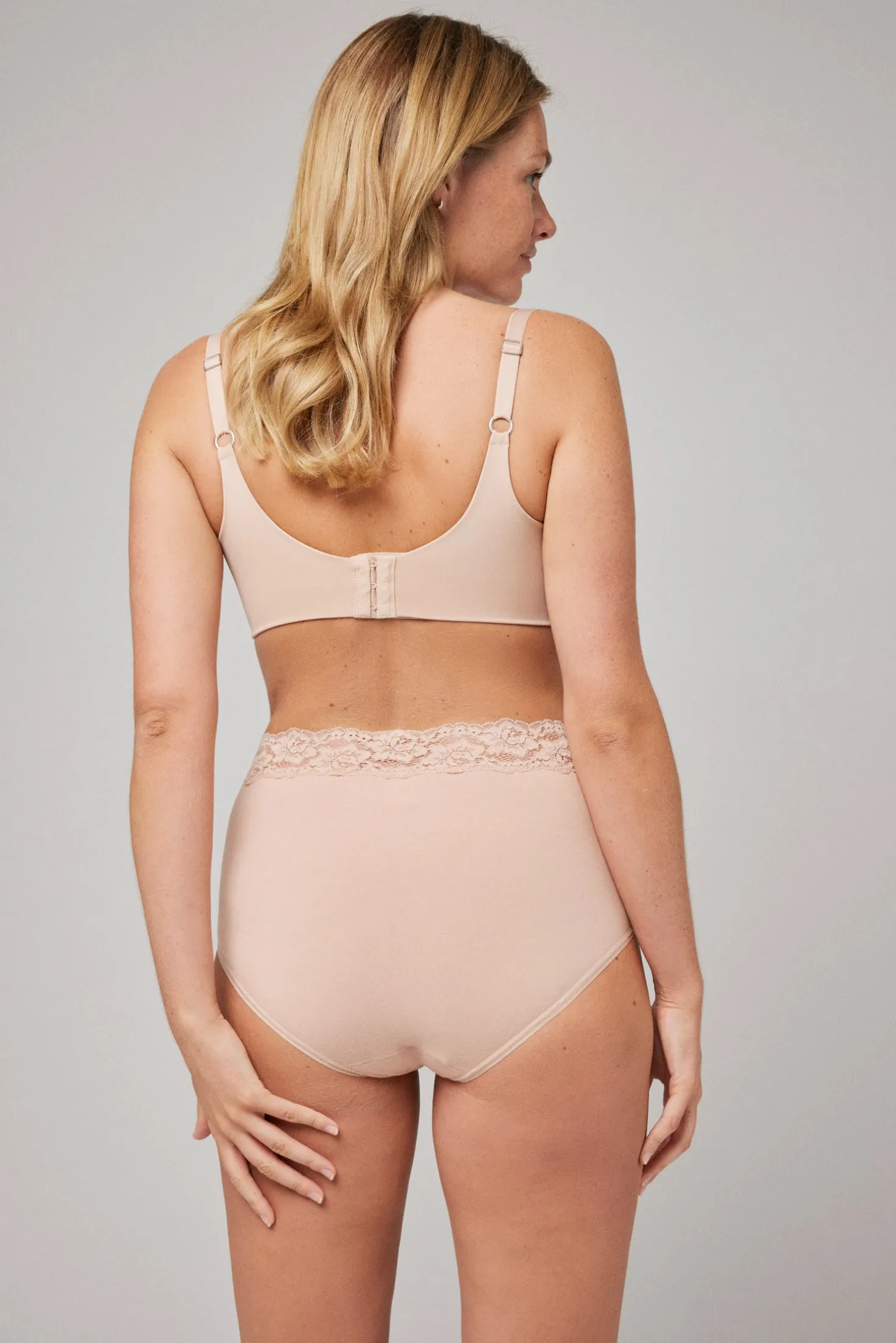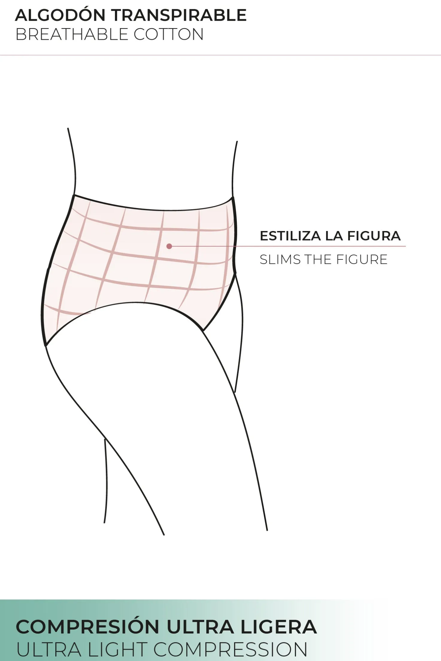 ¡Obtén el ajuste perfecto y el máximo confort con nuestra braga alta básica de algodón natural con ligero efecto control en abdomen y glúteos! Esta braga ofrece soporte adicional donde más lo necesitas, mientras que el encaje en la cintura añade un toque de elegancia. Fabricada con algodón natural para una sensación suave y transpirable, te sentirás cómoda y segura todo el día.