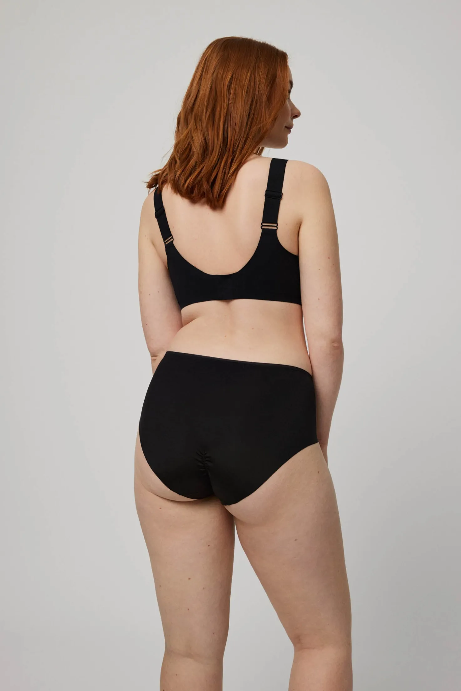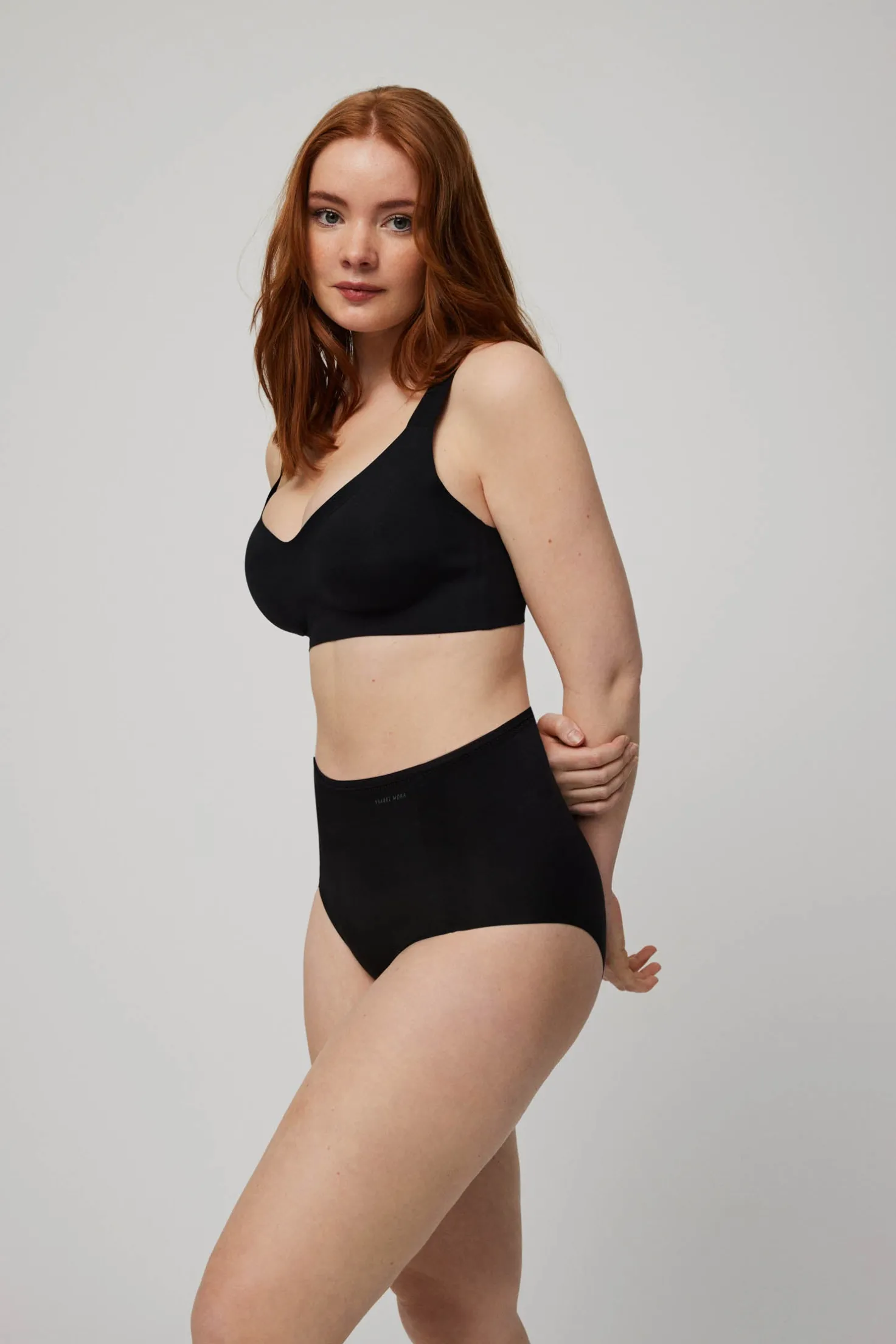 Essentials control. Braga alta de control, diseñada para proporcionar soporte y control en toda la zona abdominal, en la zona de los gluteos y de la cintura. Además, la braga tiene acabados invisibles, por lo que no hay costuras visibles o molestas que pueden causar rozaduras o incomodidad. Esto crea un aspecto más suave y elegante, sin la apariencia de bultos o líneas visibles.