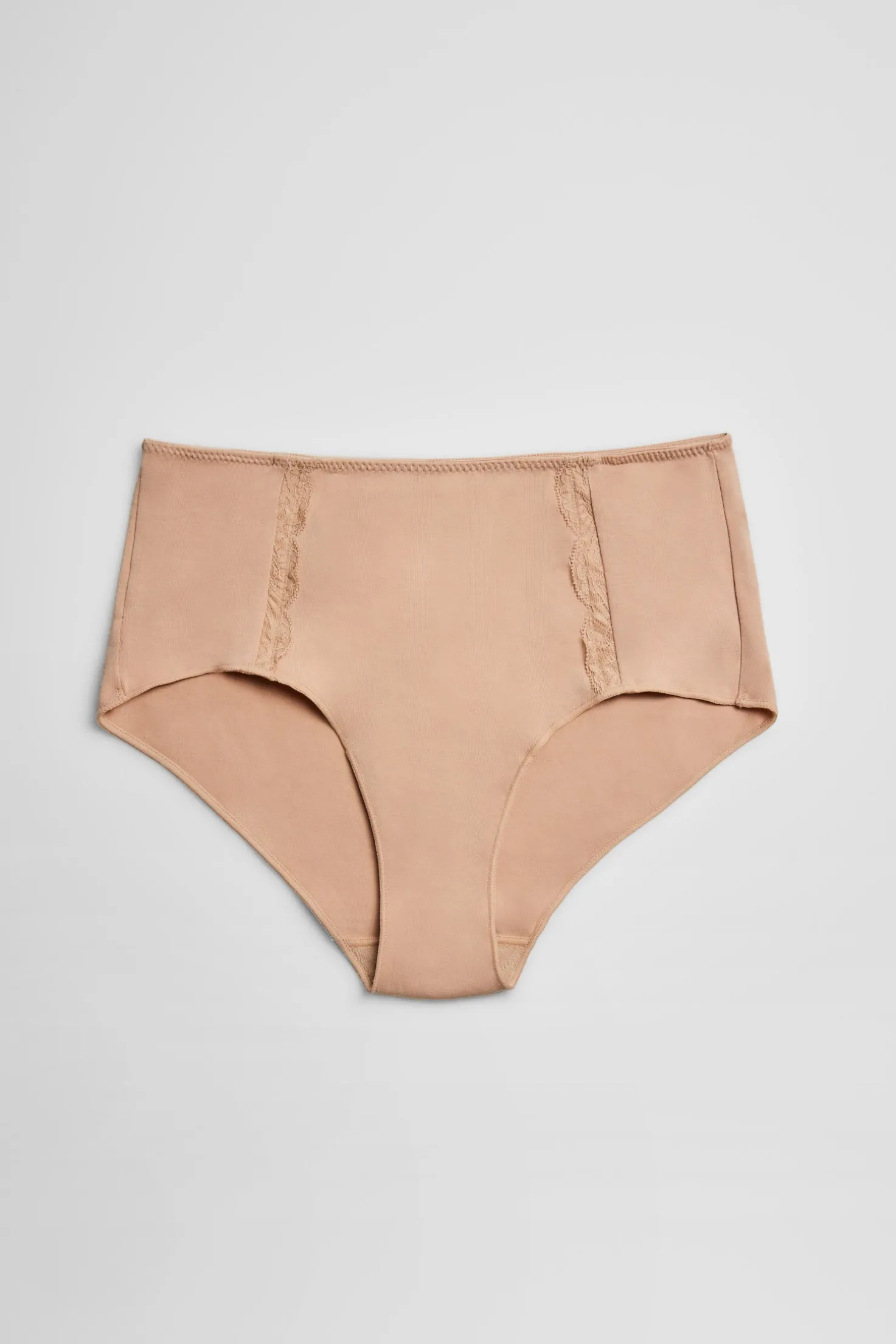 Braga alta en tejido Cotton Nature. Las fibras naturales de este material aportan un extra de suavidad a la prenda. Sus acabados con costuras planas invisibles evitan las marcas y favorecen una mayor adaptabilidad y un ajuste ergonómico perfecto. Modelo básico de gran confort pensado para el día a día. Decoradas con blonda en los laterales. Confeccionadas con material antialergénico.