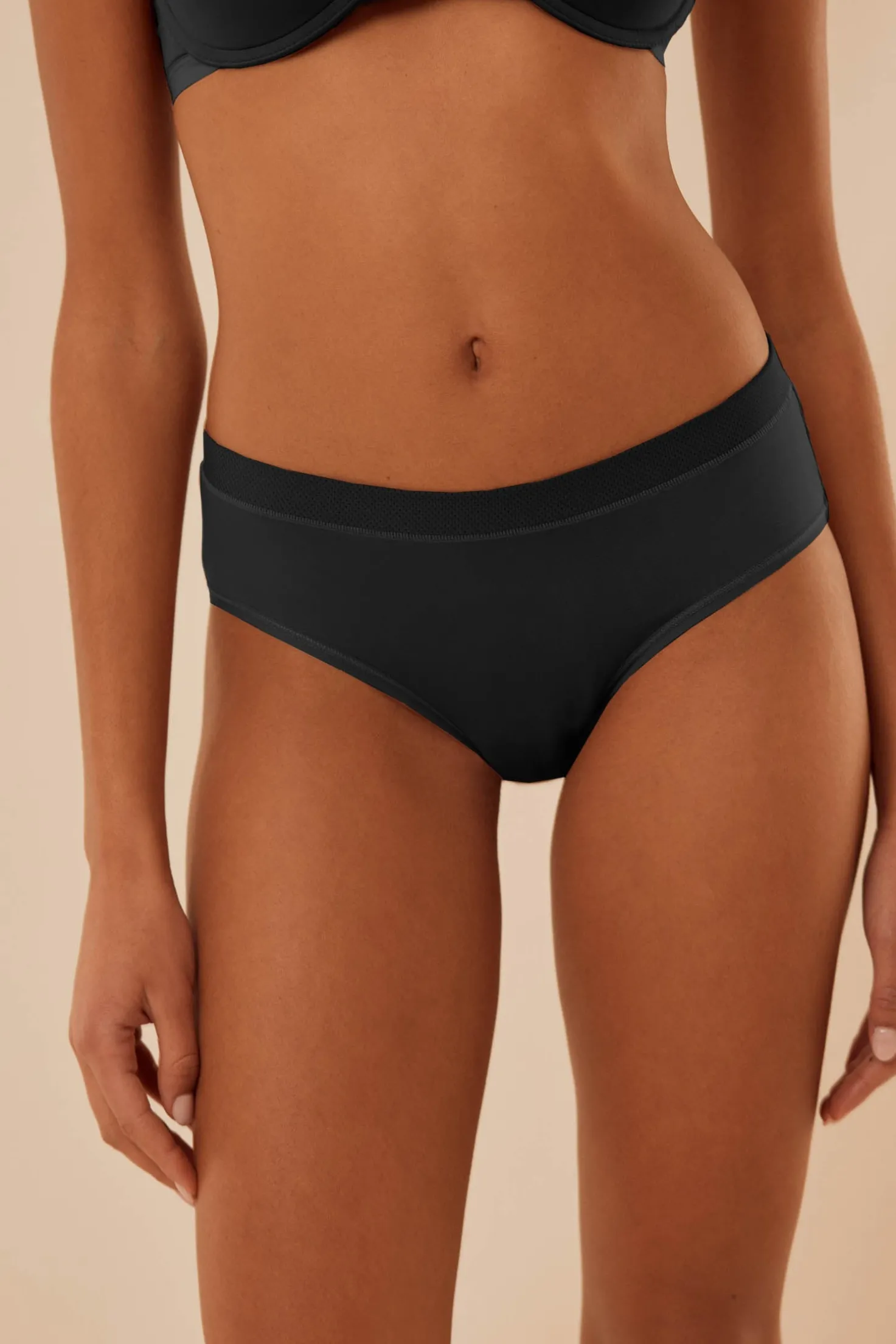 Además, nos gusta demostrar que el estilo no está reñido con los avances más recientes en el sector de la moda, incluyendo en estas bragas midi la tecnología Fresh Feel. Este sistema permite una gran transpirabilidad y frescura durante largas horas. Ya no tendrás que preocuparte por sentirte incómoda con tu ropa interior, da igual lo que estés haciendo o el clima que haga.