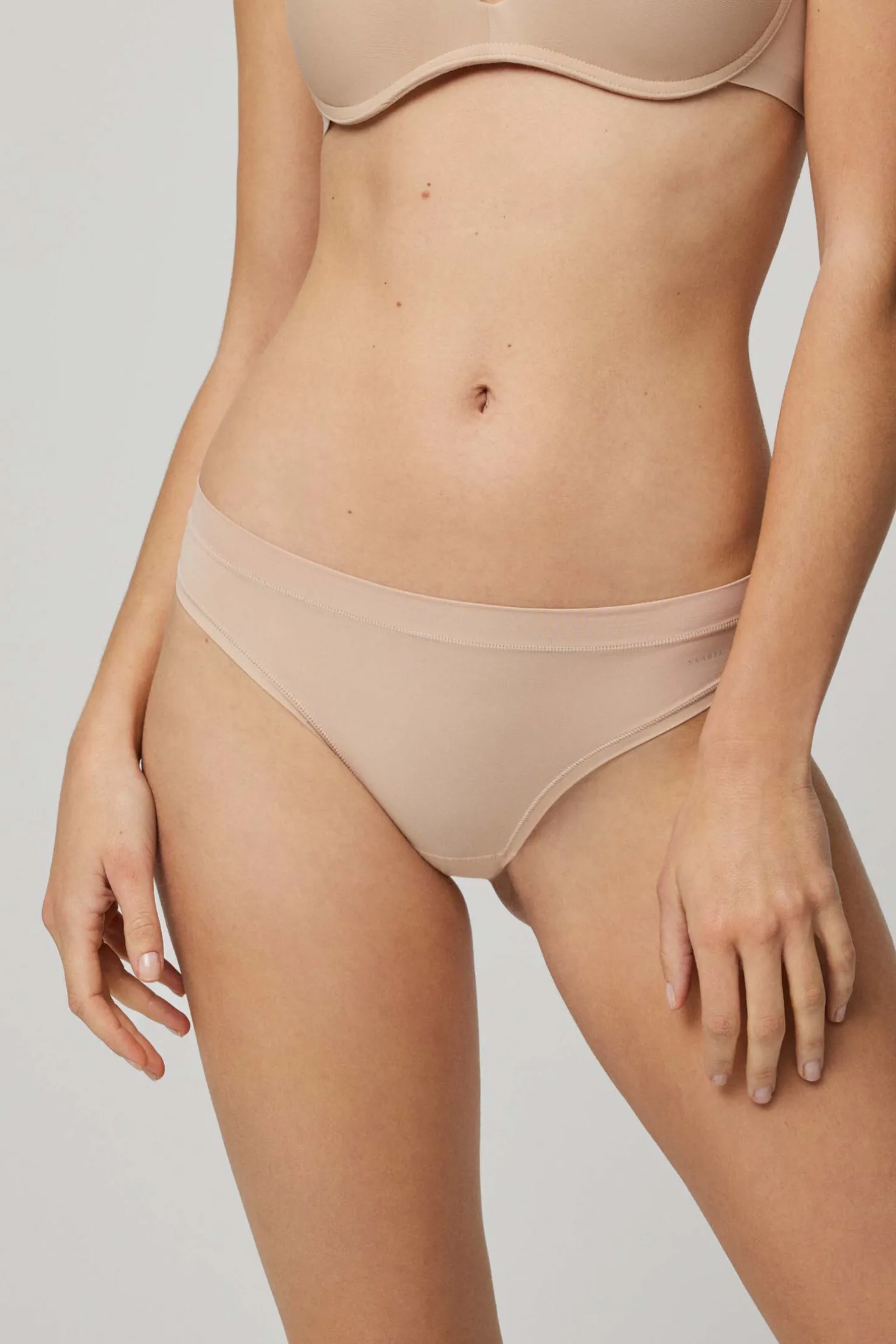 Essentials adapt. Braga mini elástica que se adapta al cuerpo. Su elasticidad permite que se adapte a cualquier tipo de silueta con amplitud de tallas, desde la S hasta la XL. Sus acabados invisibles la hacen ideal para usar debajo de ropa ajustada al cuerpo sin que se note. Esto crea una braguita con aspecto más suave y elegante, sin la apariencia de bultos o líneas visibles. ¡Una versátil prenda para cualquier ocasión!