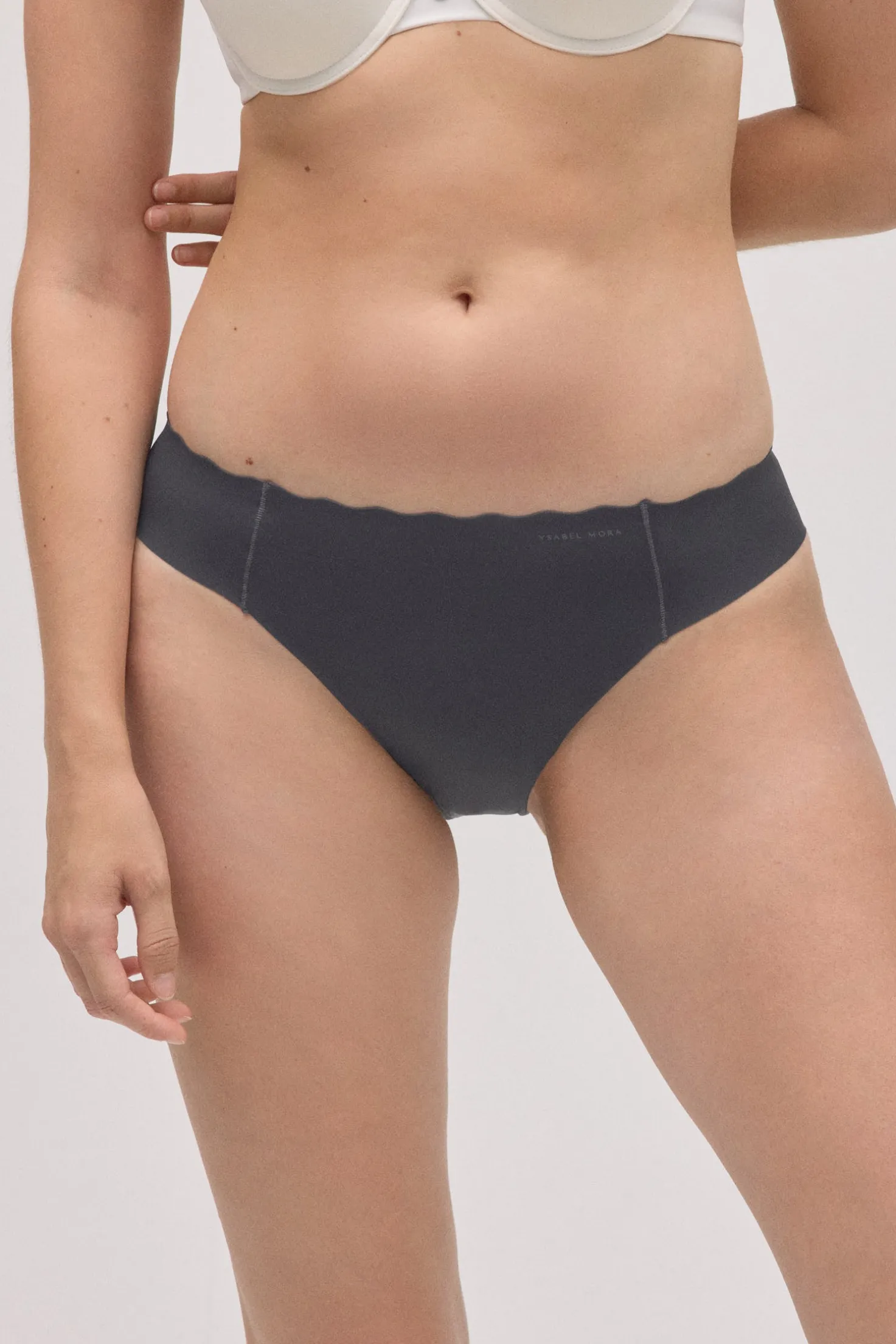 Braga mini láser de color gris marengo.