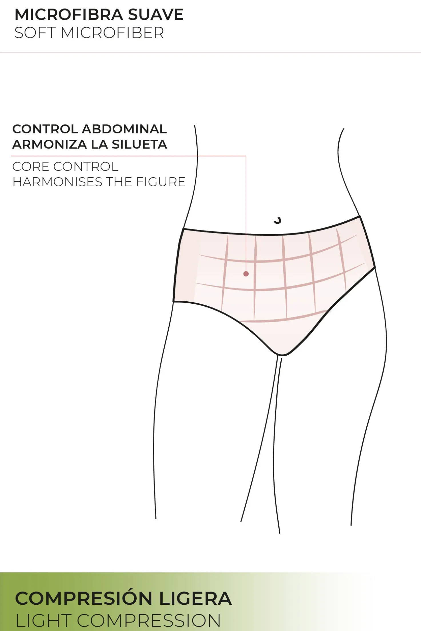 - Pieza central de refuerzo: focalizada en el abdomen para lograr efecto vientre plano.