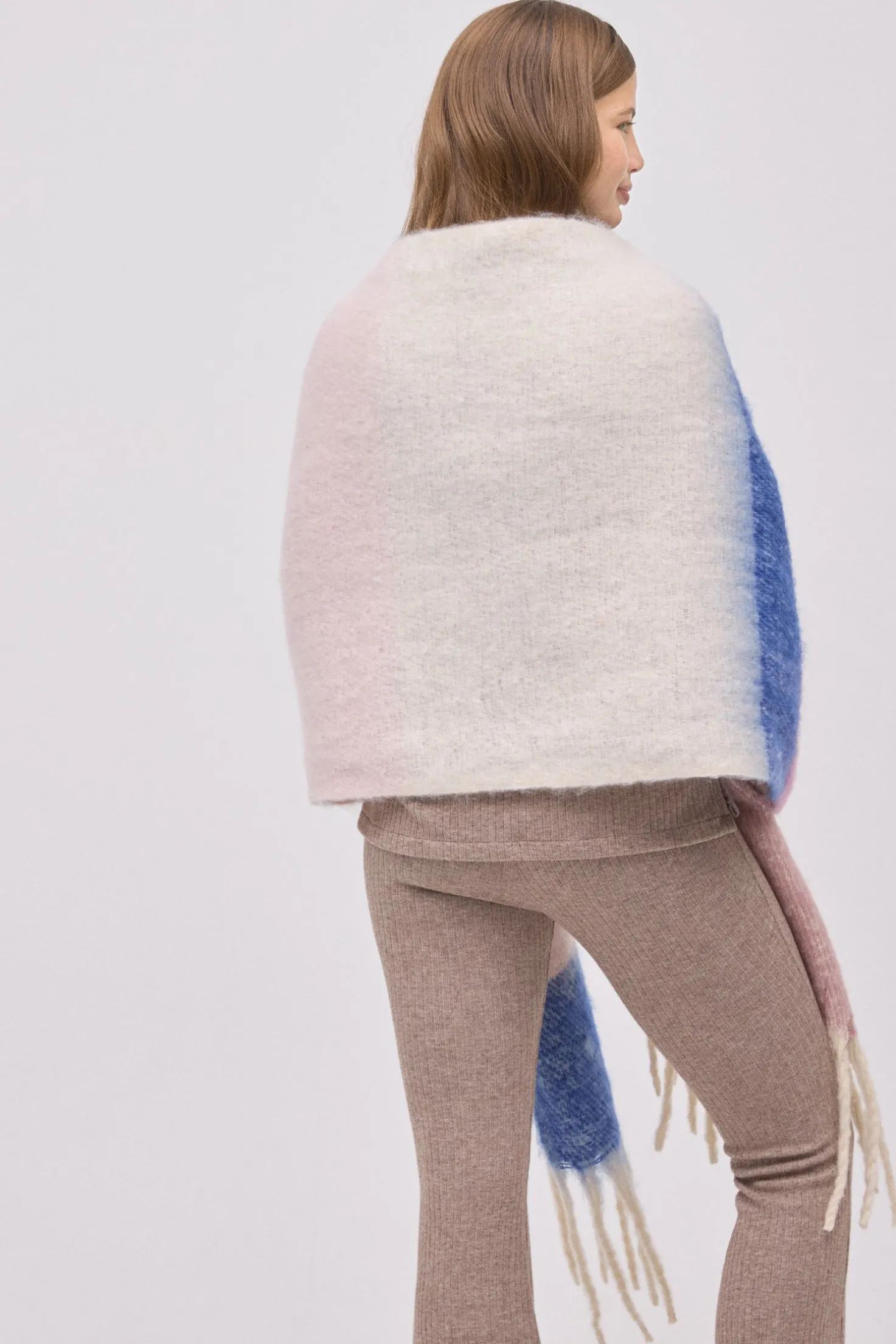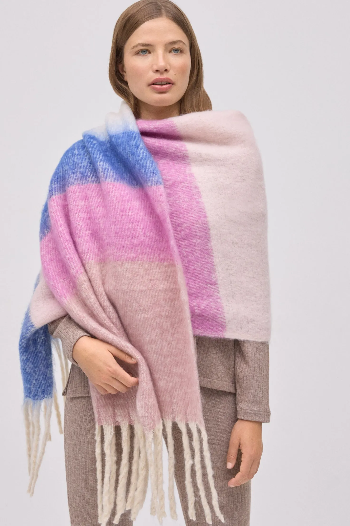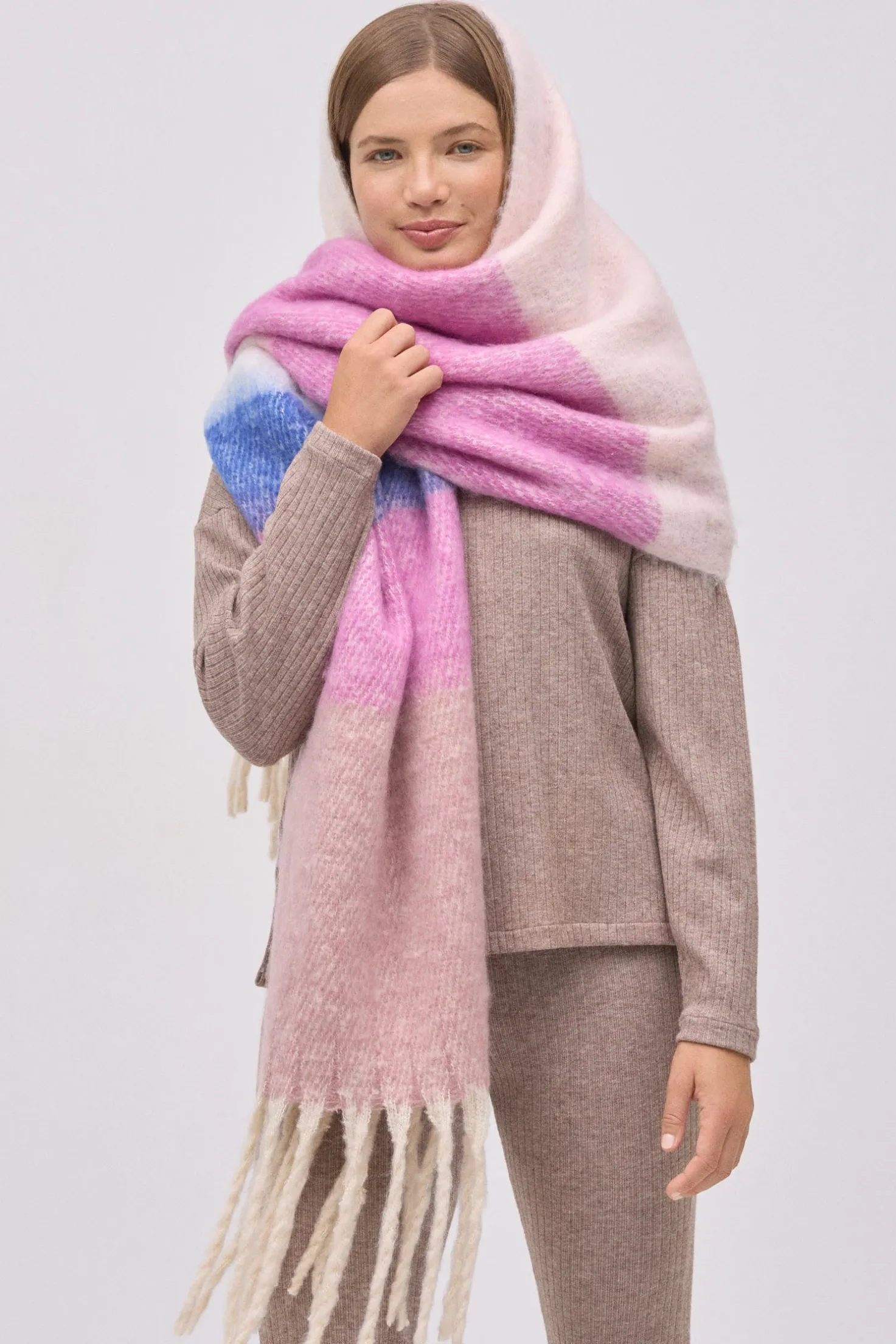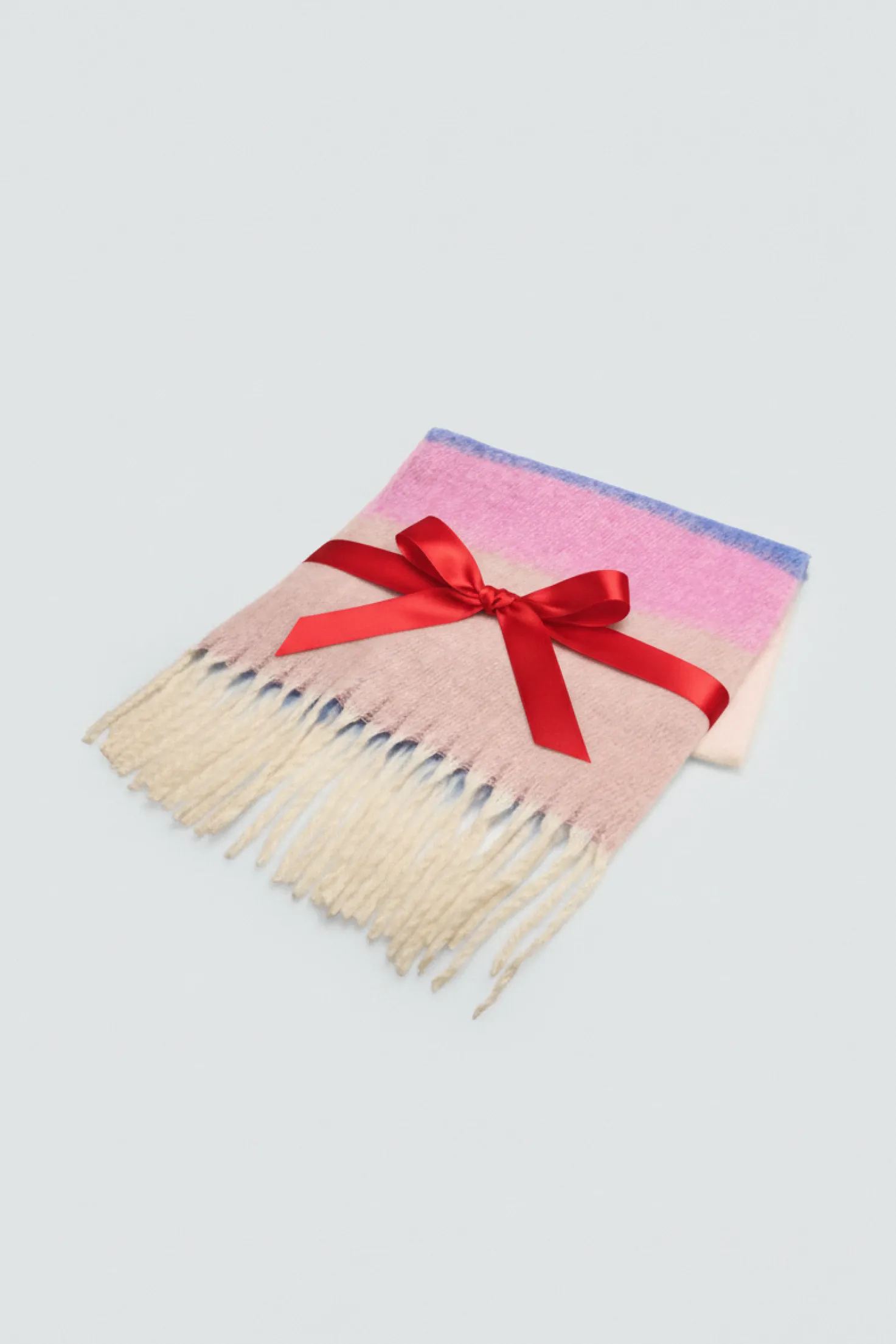 Tonos pastel y textura peluche. Esta bufanda rayada en rosa de tipo pashmirna aporta un aire romántico y delicado al look invernal.
