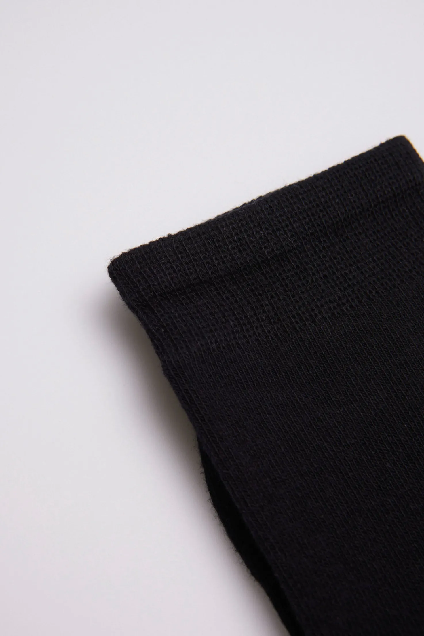 Calcetines básicos de caña alta para mujer en color negro. Su puño antipresión garantiza sujeción sin opresión. Remallado a mano.
