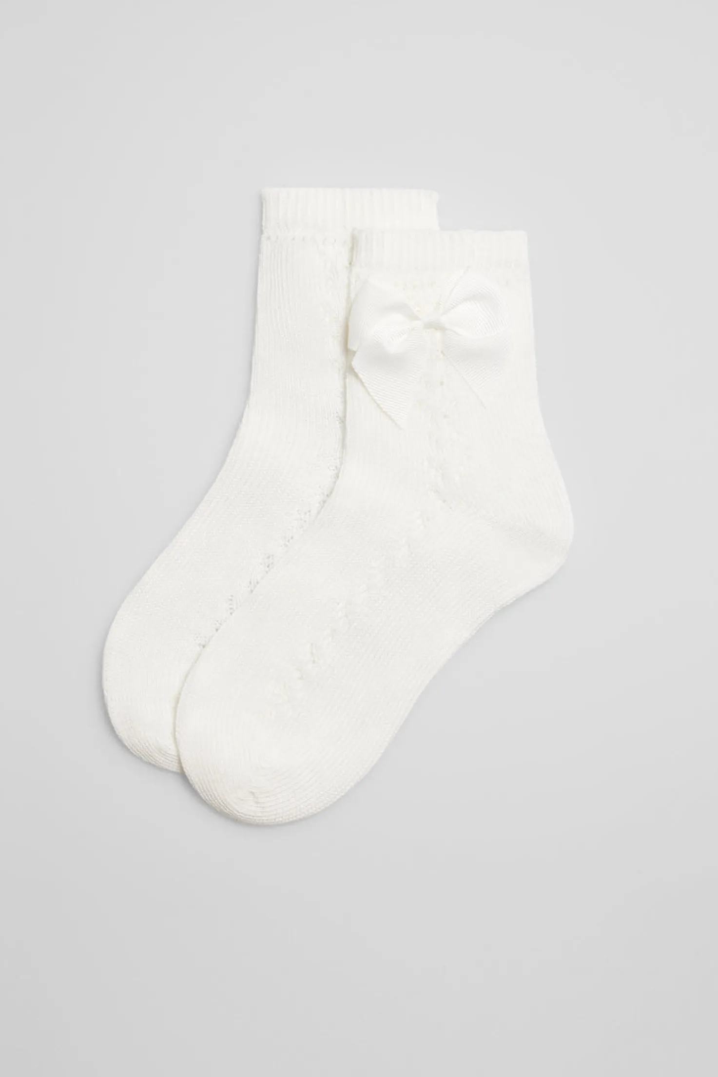Calcetines infantiles calados, tejidos en suave algodón y delicadamente remallados a mano. Puño antipresión para mayor comodidad y confort, son un básico ideal para los pequeños de la casa. Perfectos para ocasiones especiales como la comunión, añadiendo un toque de elegancia y delicadeza a su atuendo.
