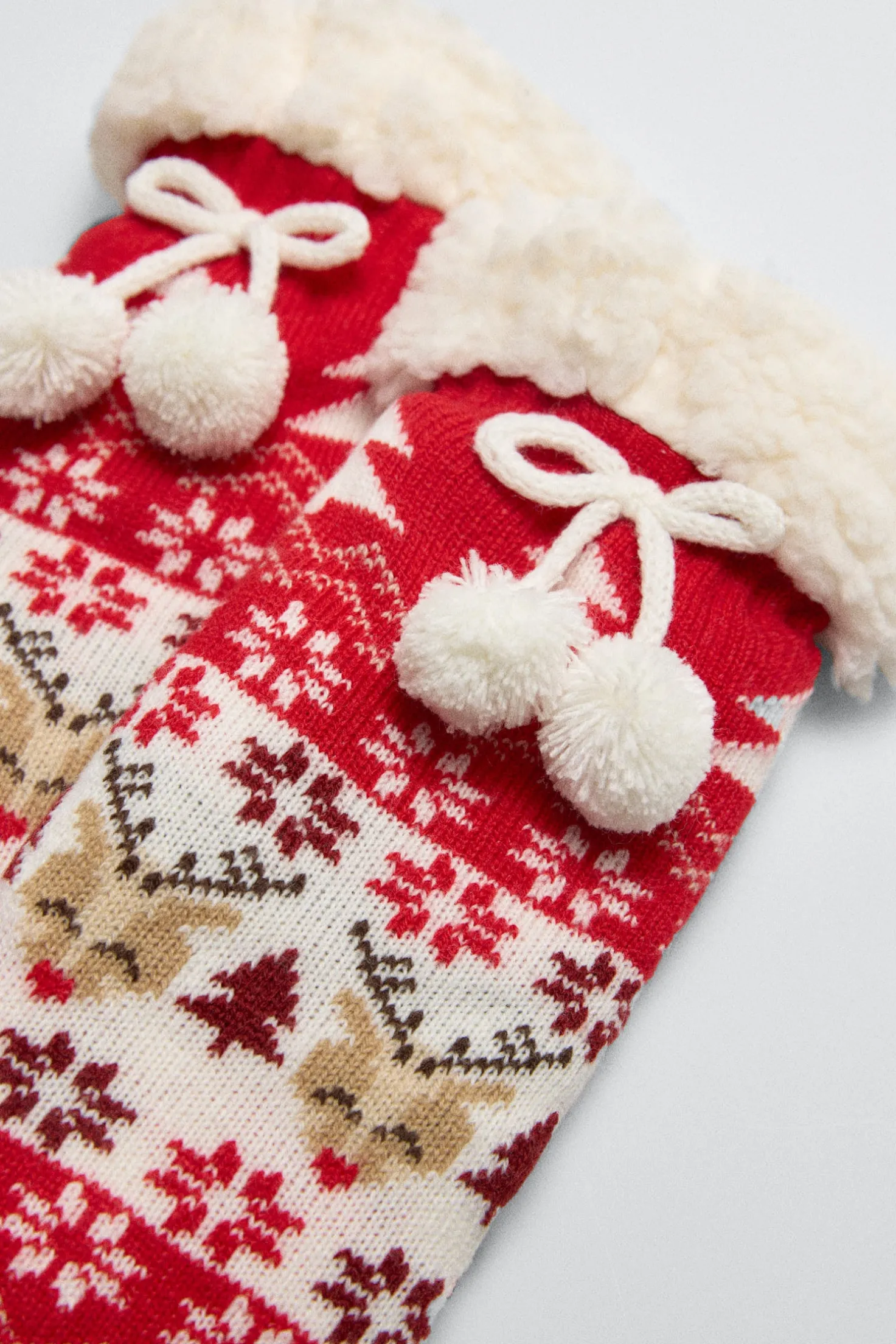 Calcetines infantiles navideños con pelo interior y detalles de pompones
