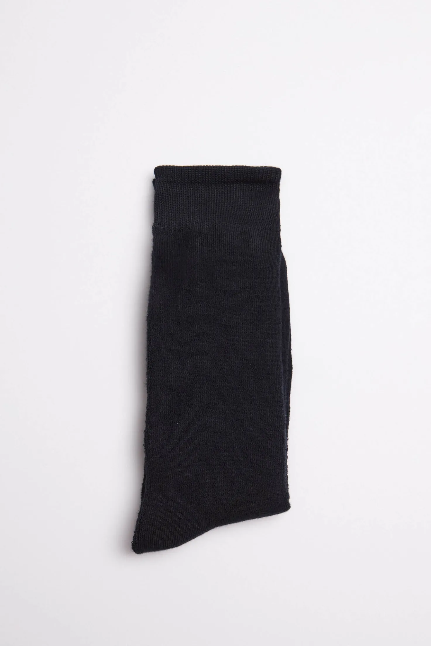 Calcetín térmico de caballero. Confeccionado con rizo gracias al cual se retiene el calor corporal obteniendo una agradable sensación de bienestar; puño anti presión para mayor sujeción sin opresión.