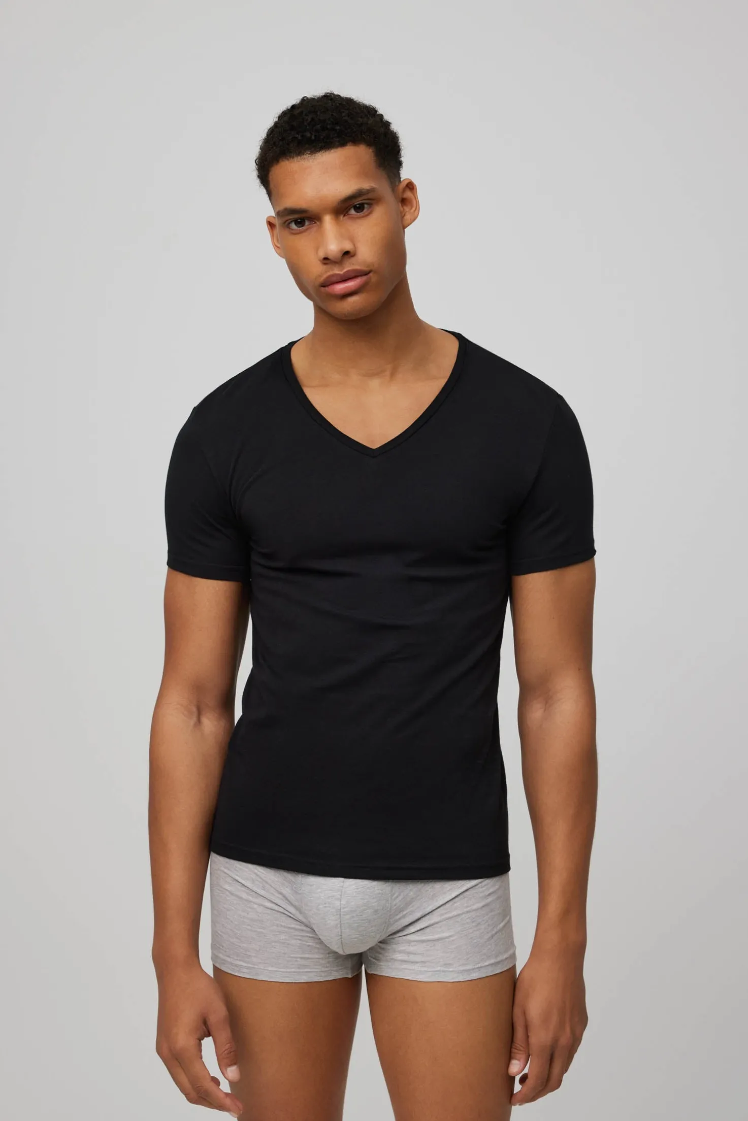 Disponible en los colores blanco y negro, esta camiseta interior para hombre con cuello de pico es un básico imprescindible en tu guardarropa. La atemporalidad de estos tonos te permitirá combinarla con diferentes prendas y colores, asegurando que siempre luzcas impecable sin importar el conjunto que elijas.