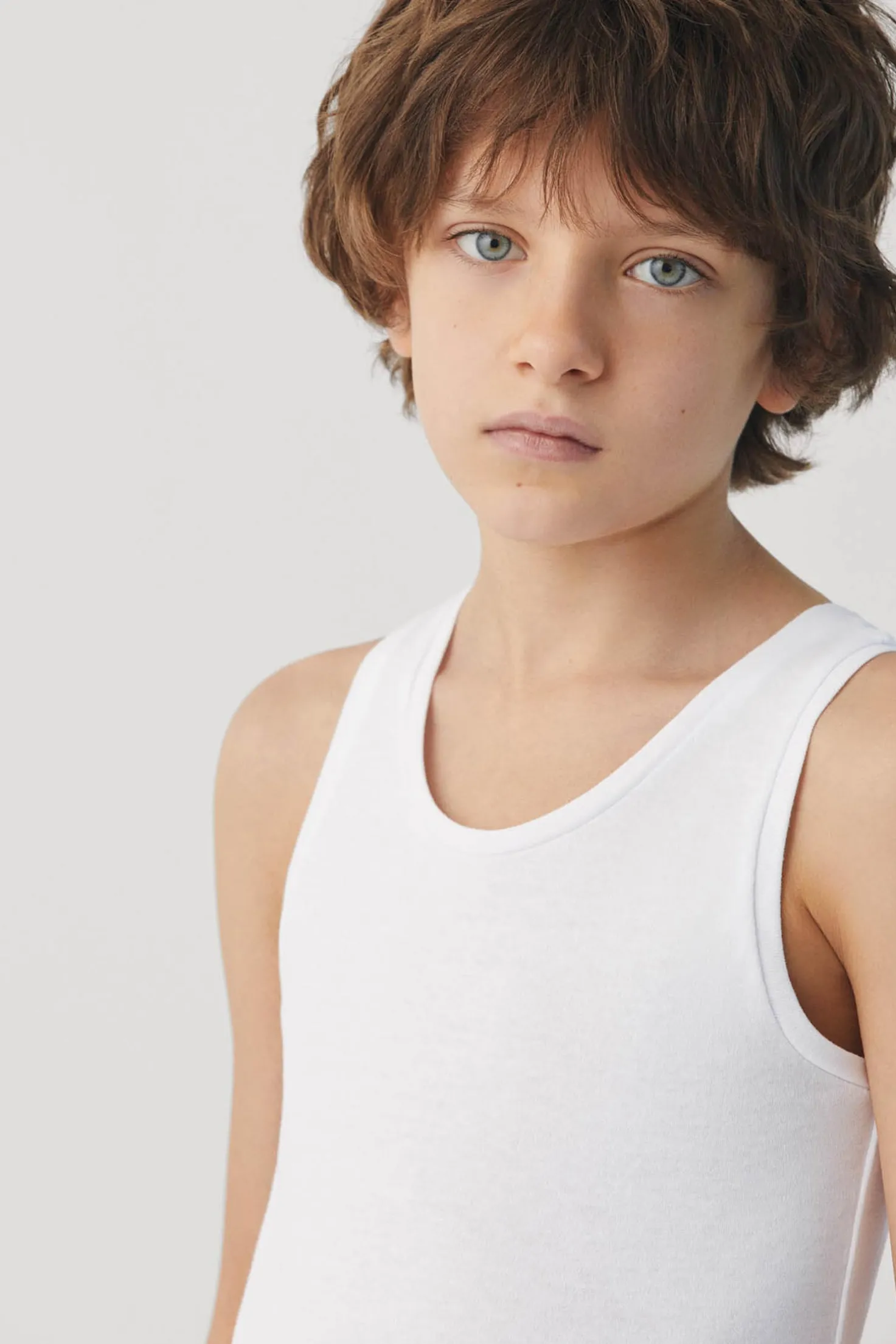 Nuestra camiseta interior de tirantes para niños es la prenda esencial que necesitan los pequeños de la casa para cualquier ocasión. Se trata de una prenda diseñada pensando en la comodidad y la suavidad, esta camiseta sin mangas es perfecta para que puedan disfrutar en su día a día.