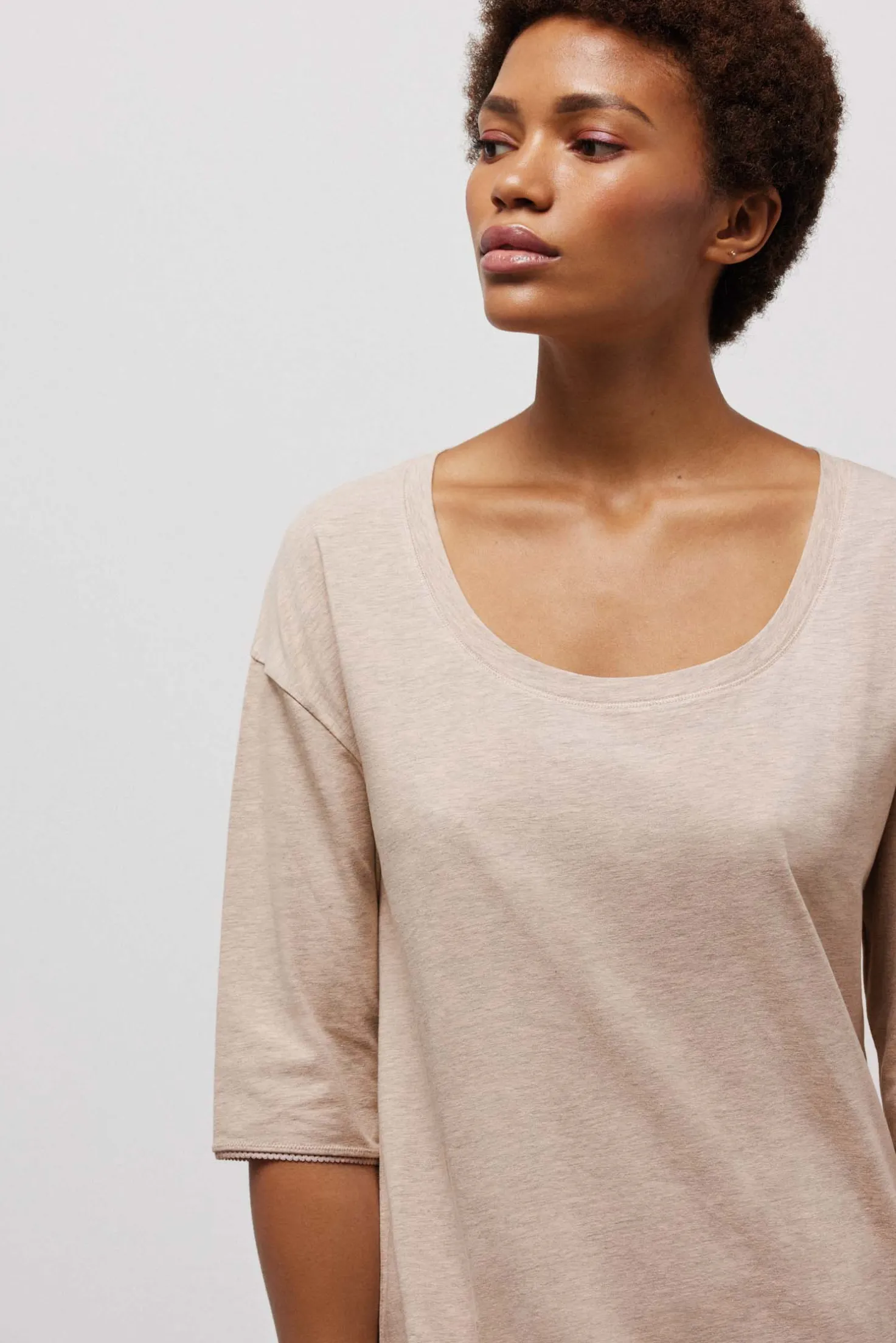 Camisón algodón orgánico manga larga beige