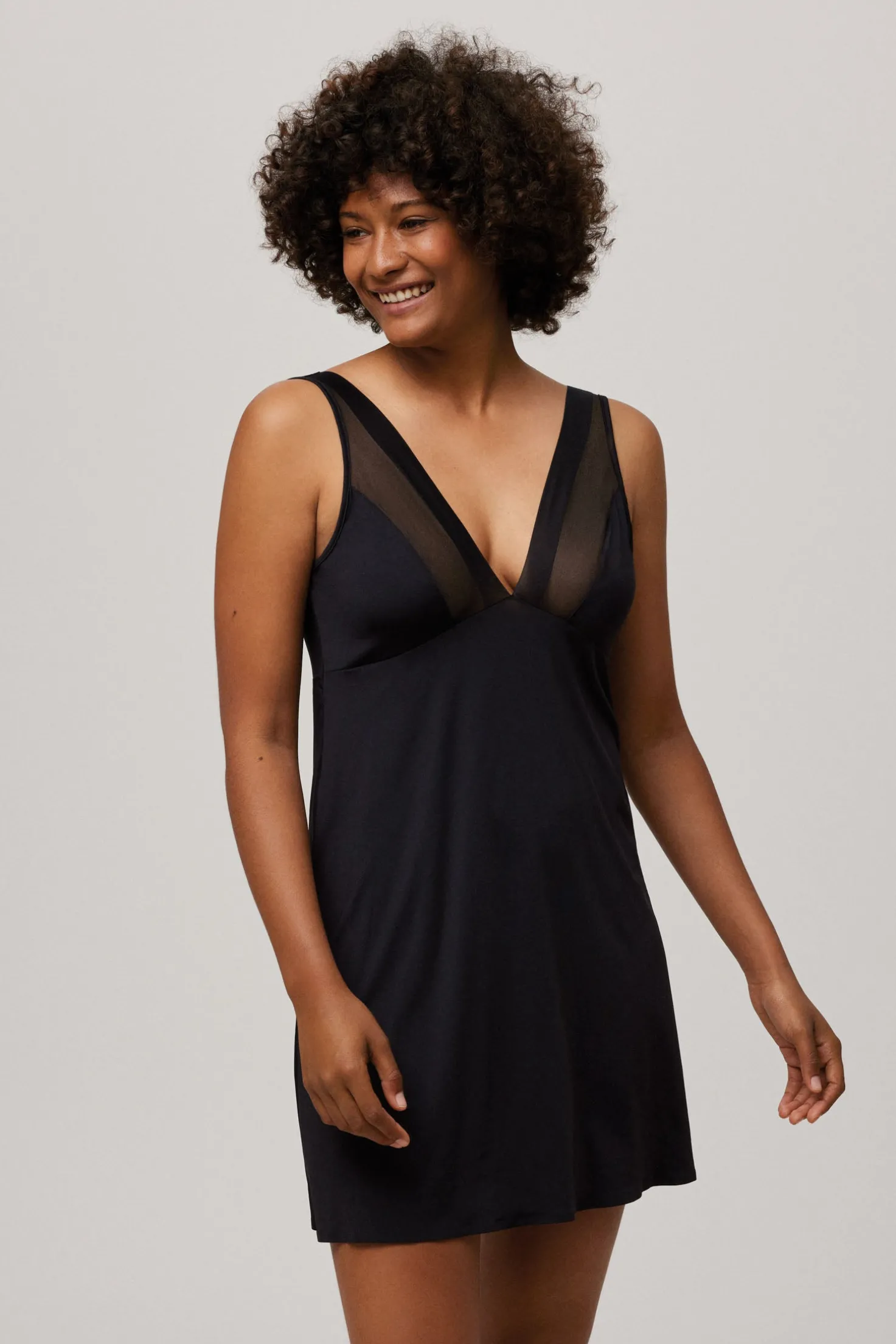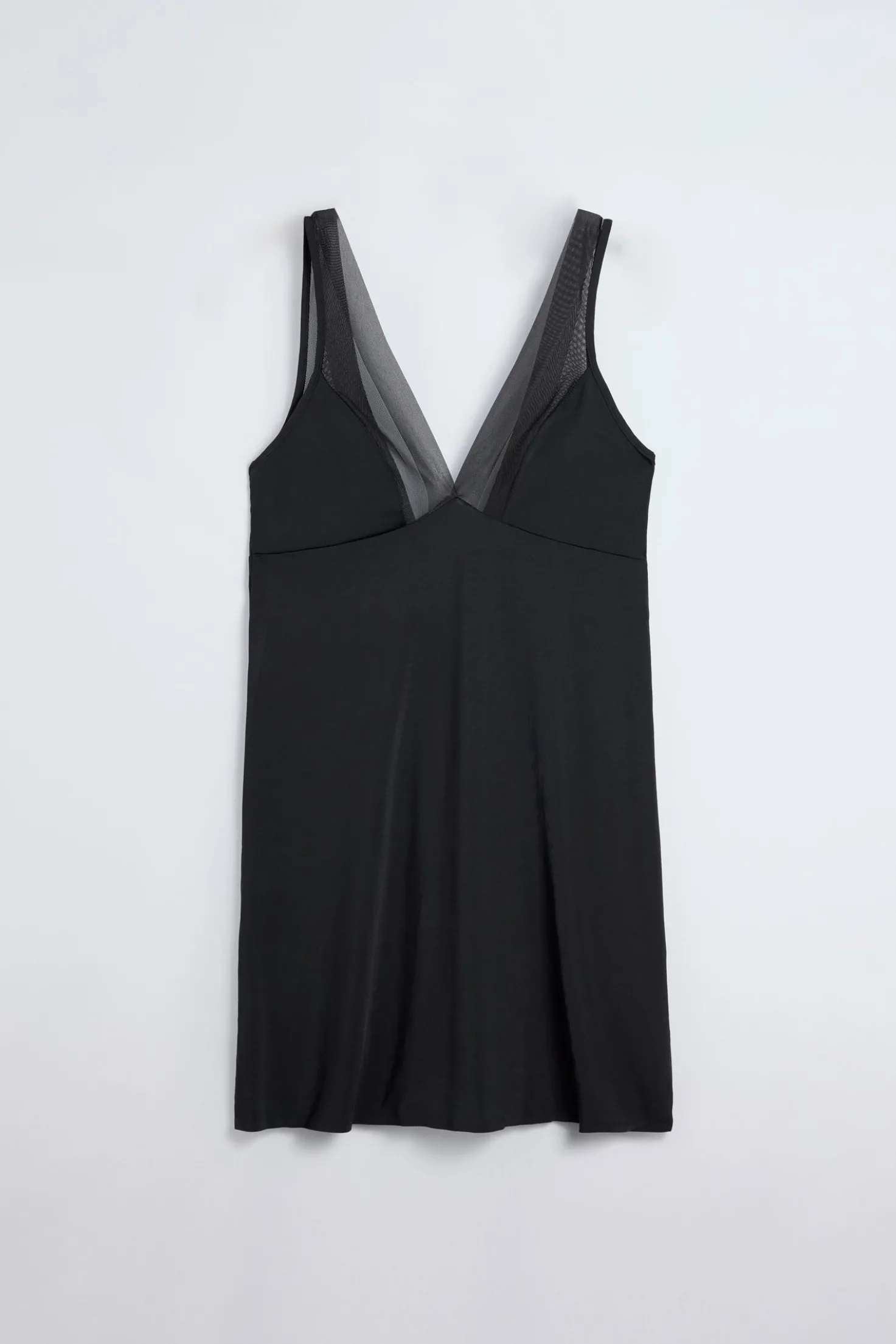 El tejido elástico y suave de este camisón proporciona una gran adaptabilidad y permite moverte libremente mientras duermes. Además, su composición con un 90% de poliamida y un 10% de elastano garantiza su durabilidad y resistencia.