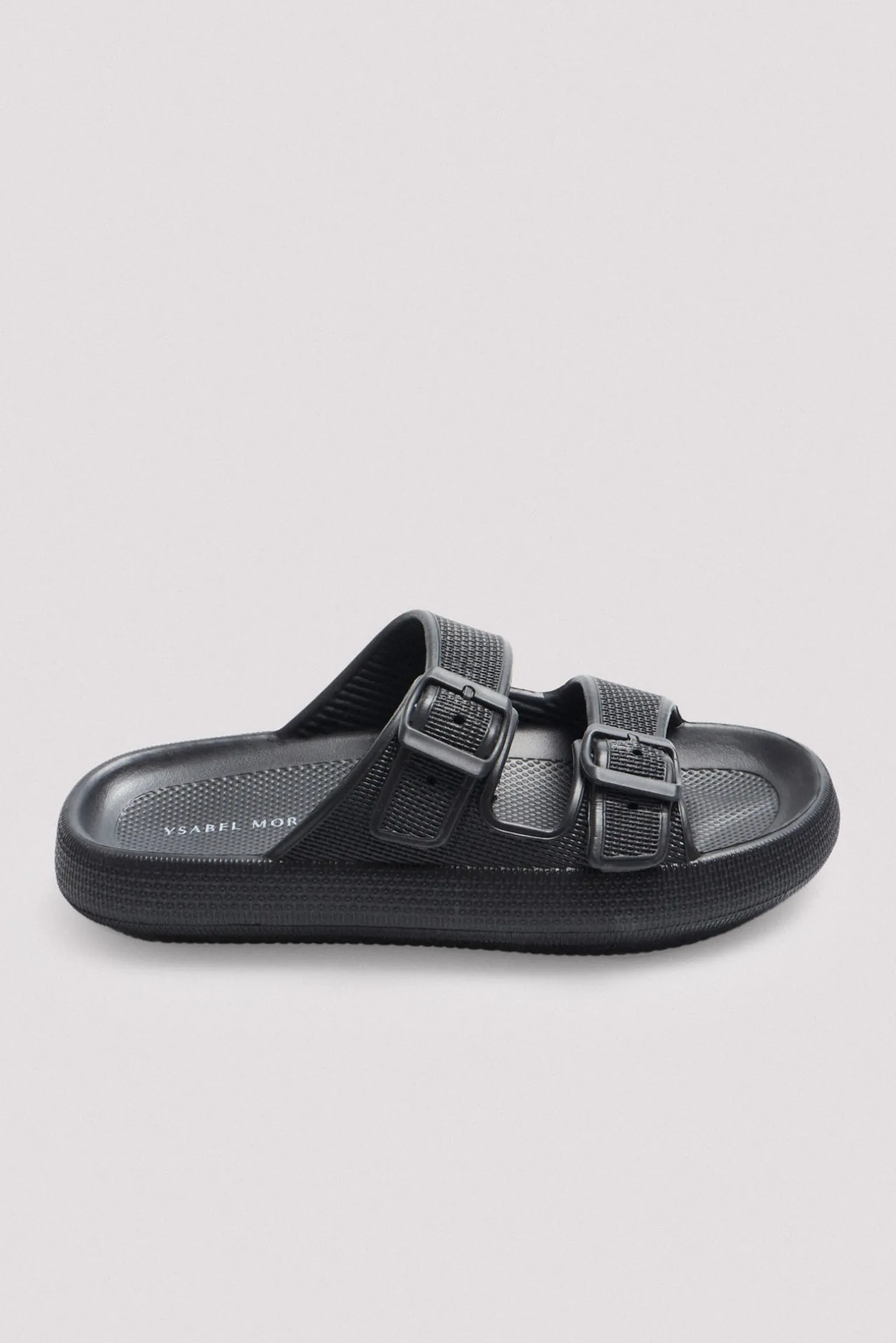 Chanclas con diseño moderno y ligero, ideal para caminar con comodidad durante todo el verano. Cuentan con un cierre de doble hebilla ajustable, permitiendo un ajuste personalizado para un mayor confort en cada paso. Perfectas para disfrutar del sol y la arena. Color negro.