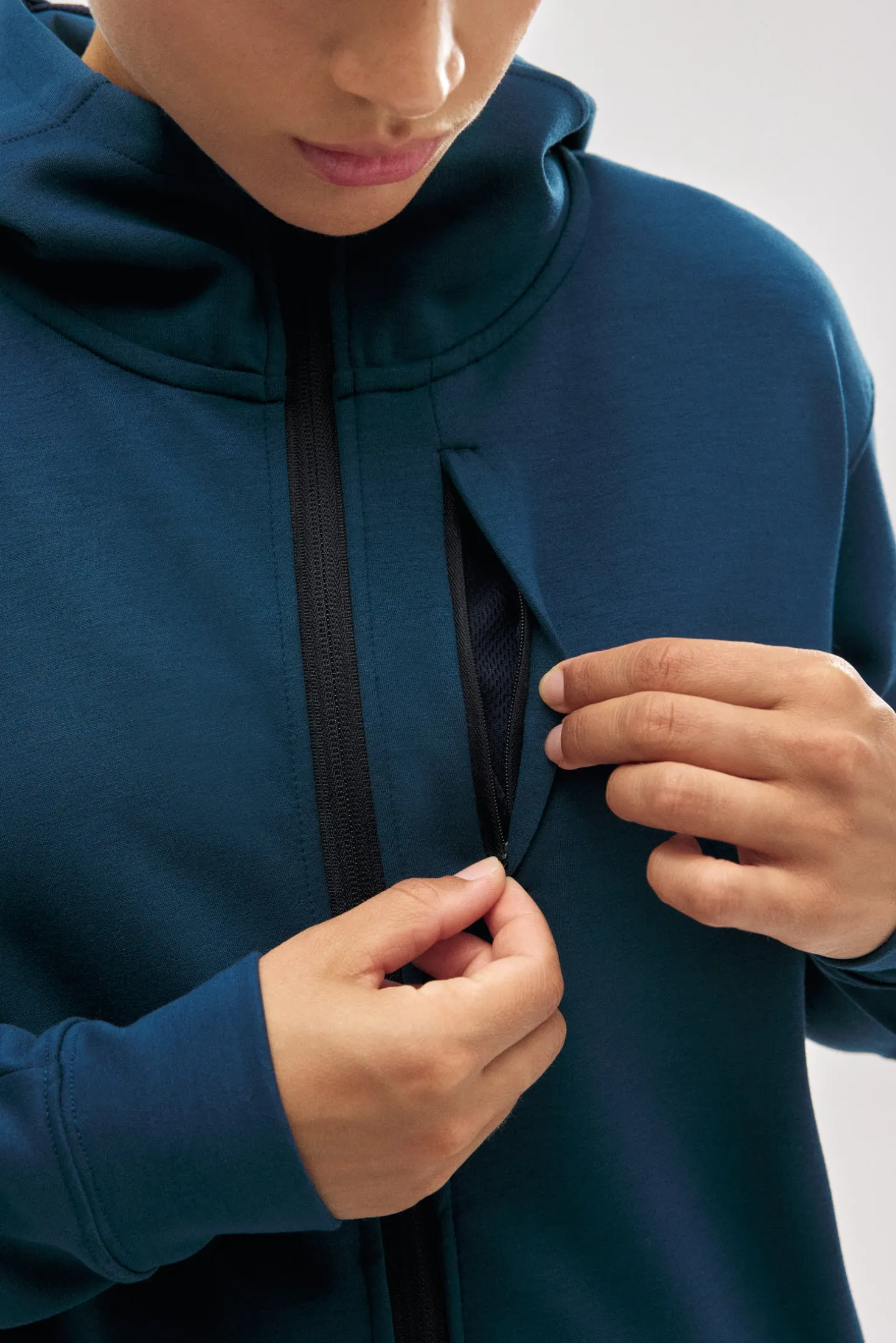 - Con capucha para mayor protección y un toque deportivo.