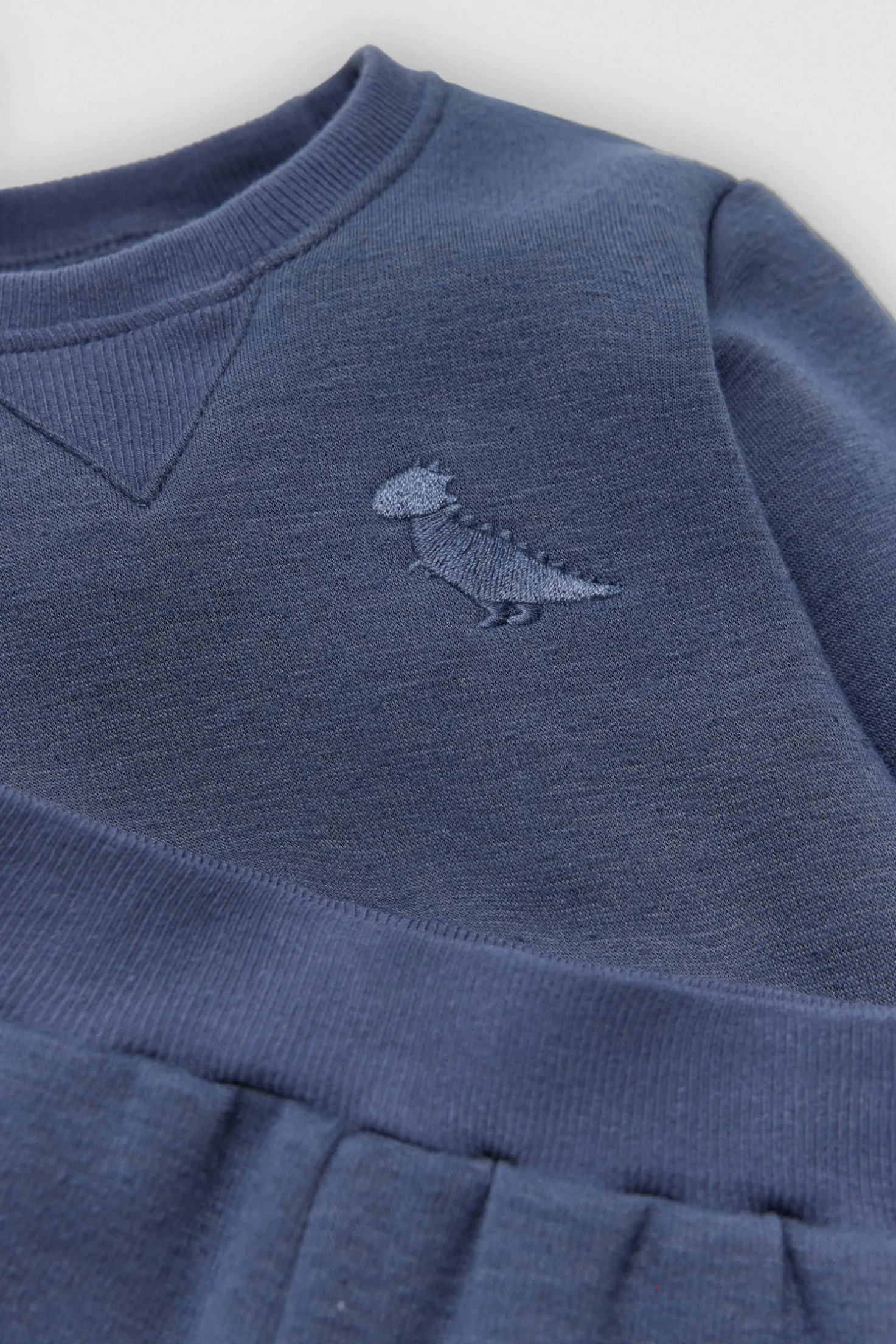Conjunto de chándal básico para bebé ideal para el día a día. Compuesto por una sudadera de manga larga y un pantalón jogger con interior afelpado, ofrece máxima suavidad y libertad de movimiento. Su diseño delicado con detalle bordado lo convierte en una prenda práctica y adorable para cualquier ocasión.