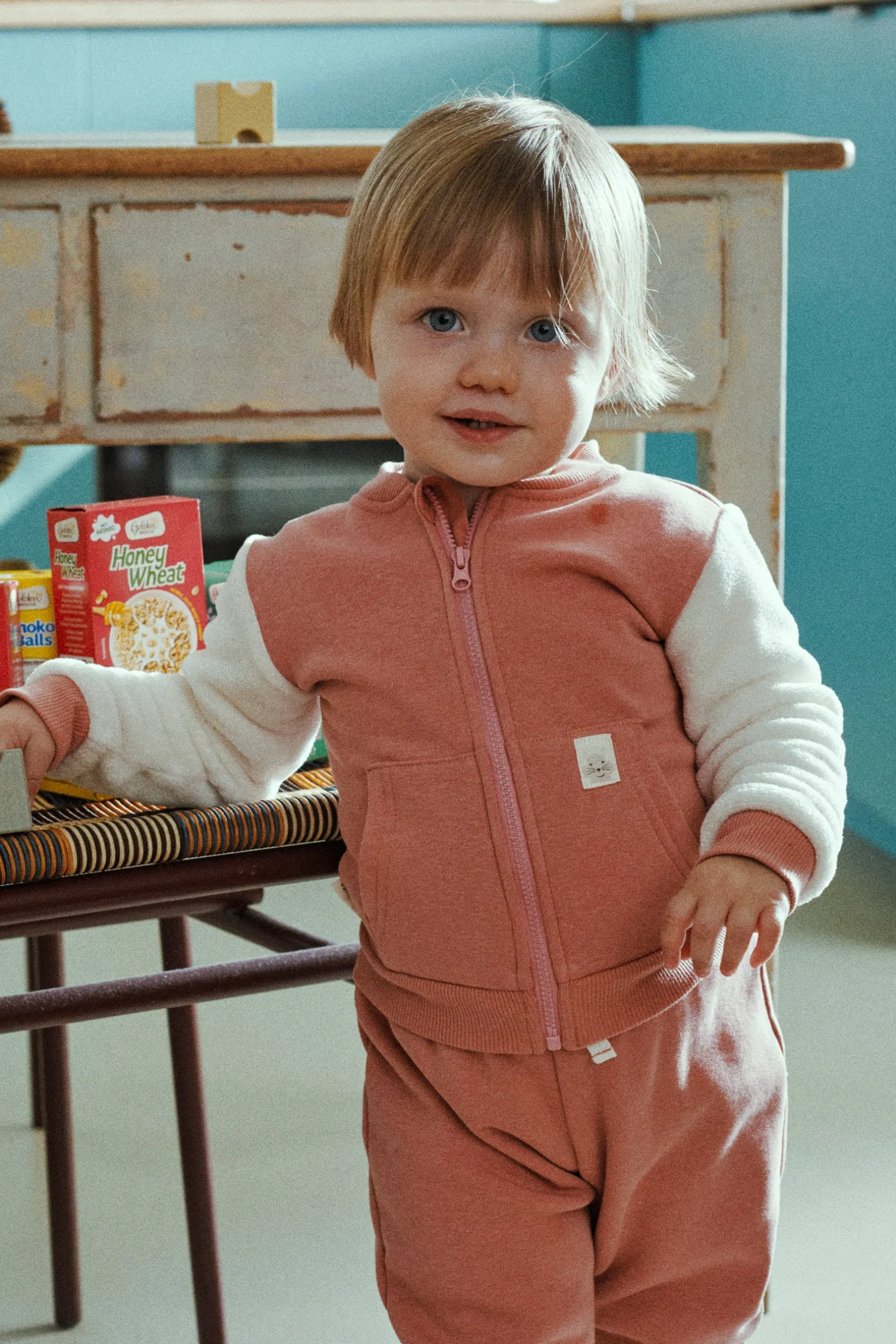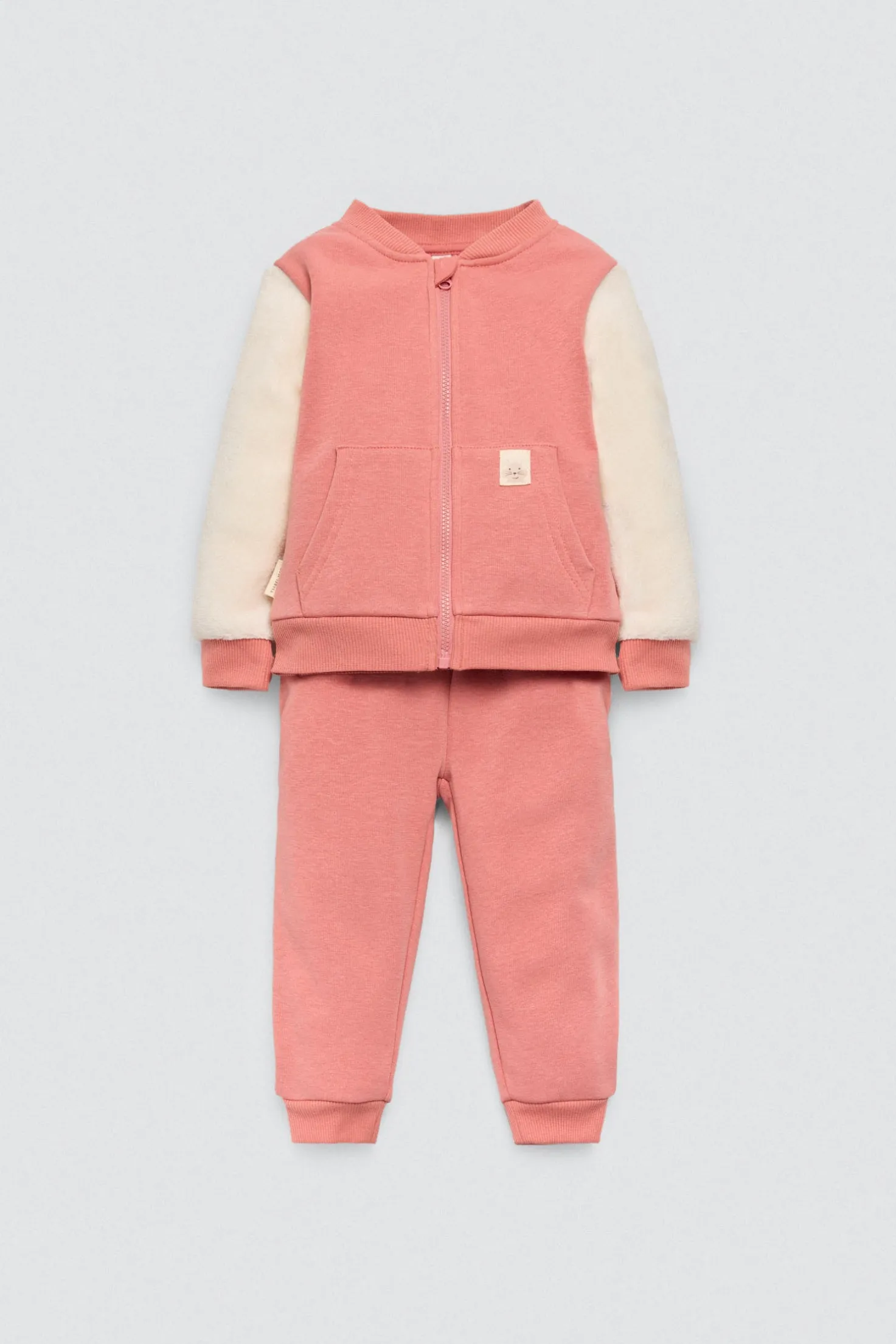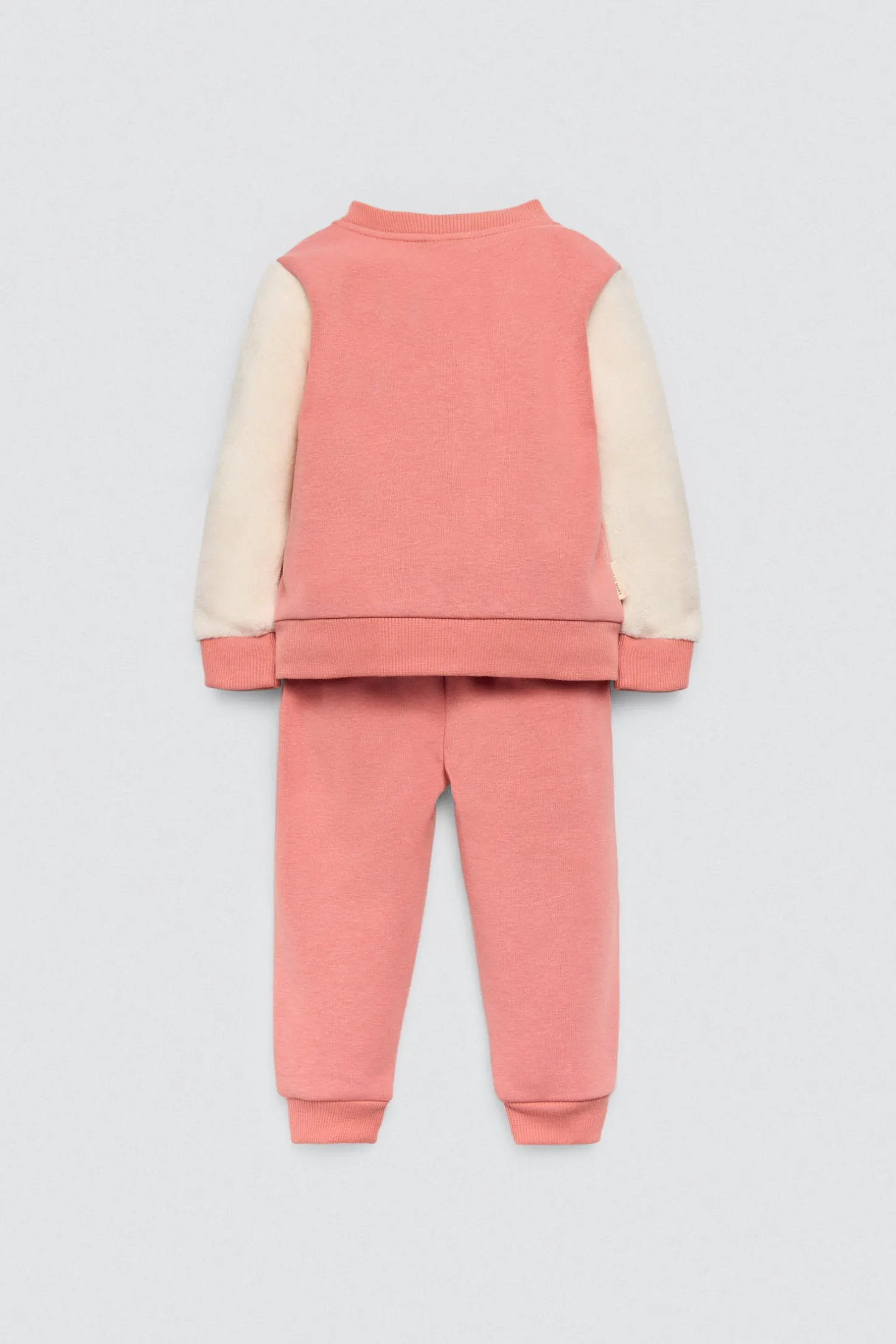 Chándal para bebé estilo casual con interior afelpado suave. Compuesto por chaqueta con cierre de cremallera y pantalón ajustable. Ideal para los días fríos gracias a su calidez y libertad de movimiento.