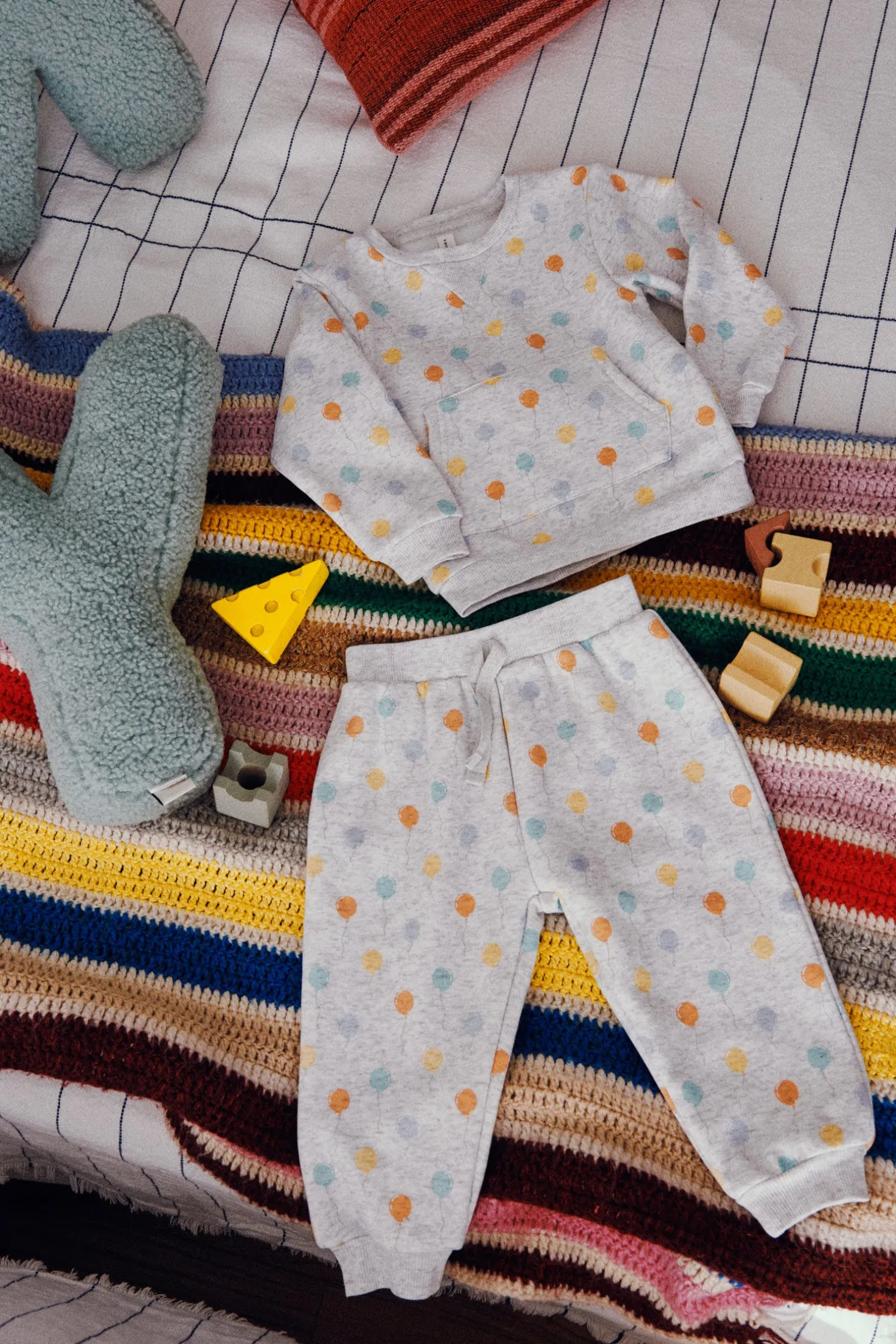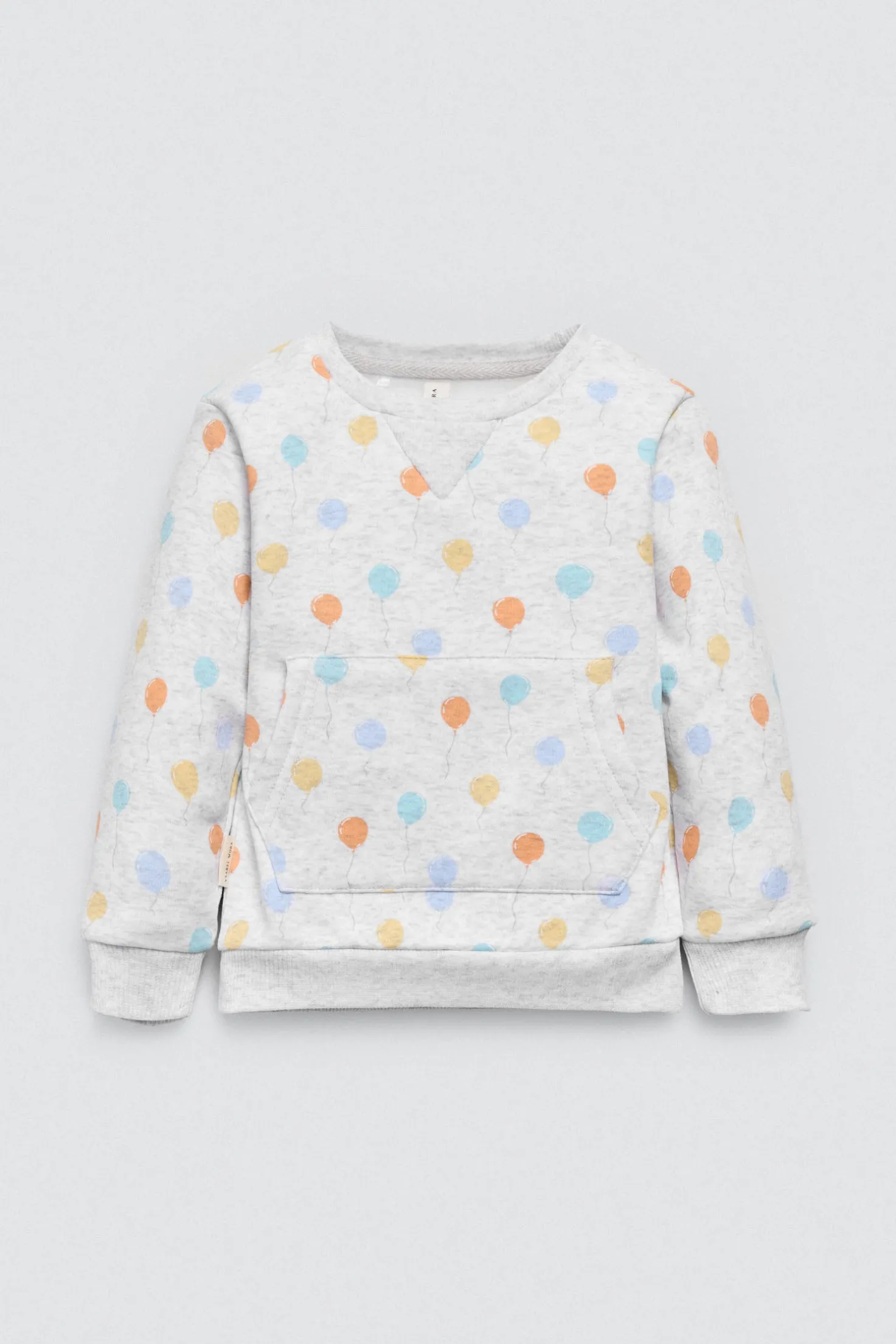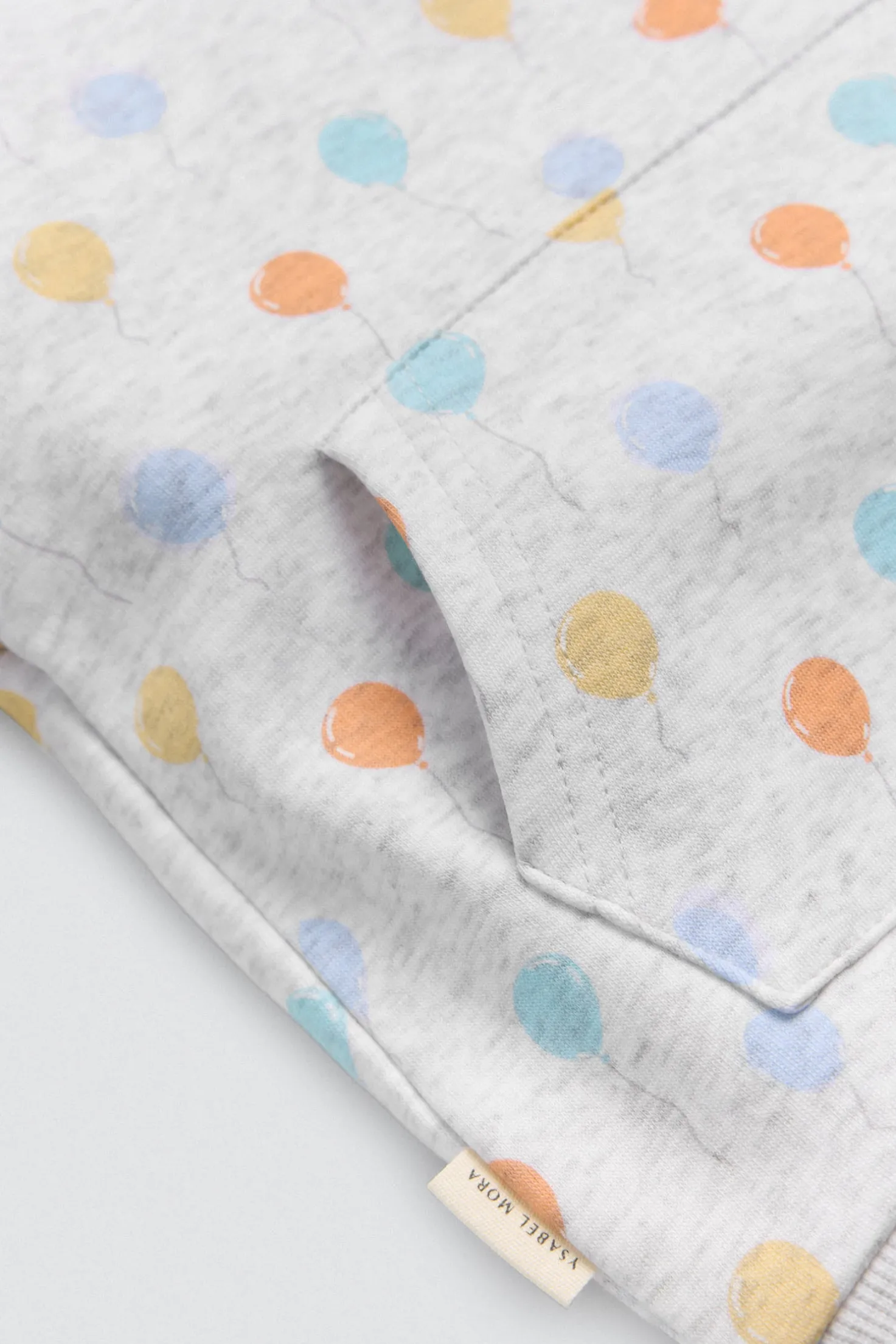 Chándal de bebé. Sudadera de manga larga estampada con globos y bolsillo canguro. Pantalón largo con cinturilla elástica ajustable. Interior afelpado que aporta calor sin perder libertad de movimiento. Ideal para jugar y explorar.