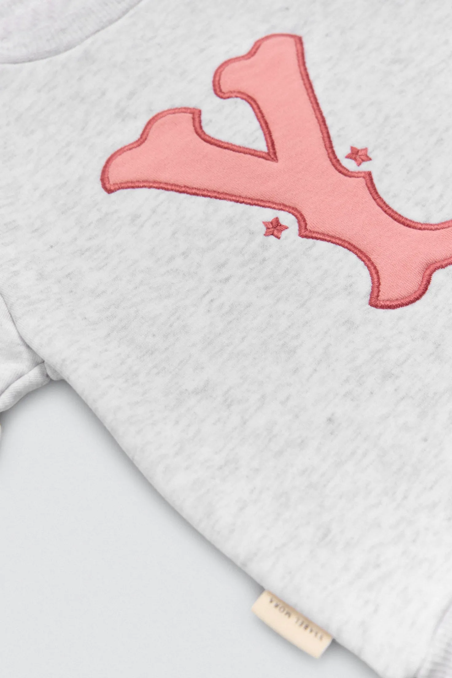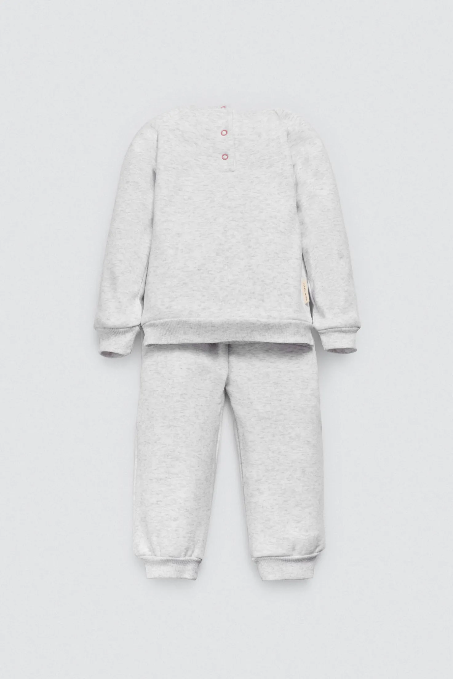 Chándal para bebé unisex con interior afelpado. Compuesto por una sudadera y un pantalón en color gris, inspirado en el universo de Candy Circus. Ideal para combinar comodidad y estilo en los días de frío.