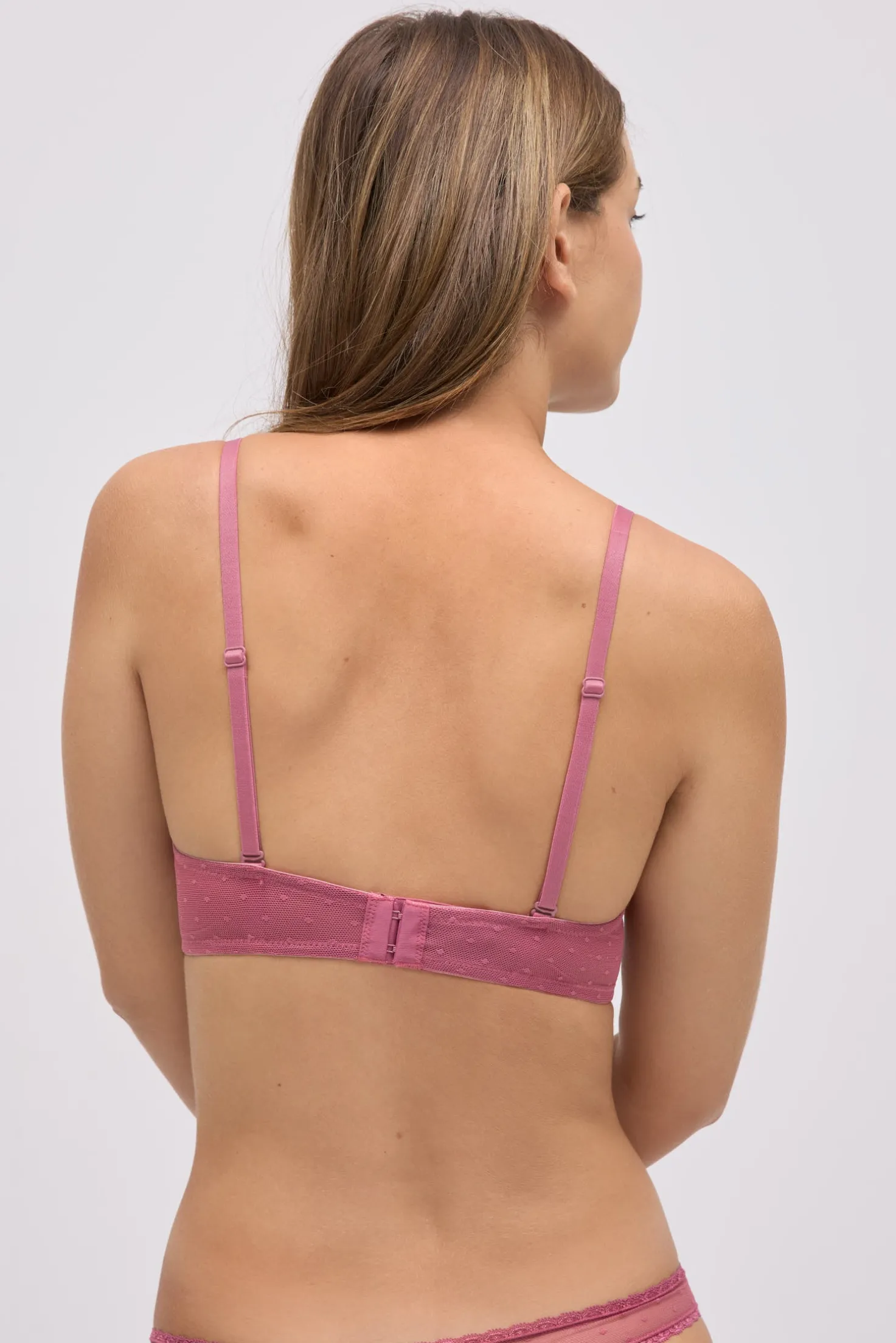 Conjunto lencero sujetador push up con tirantes multiposición y tanga rosa