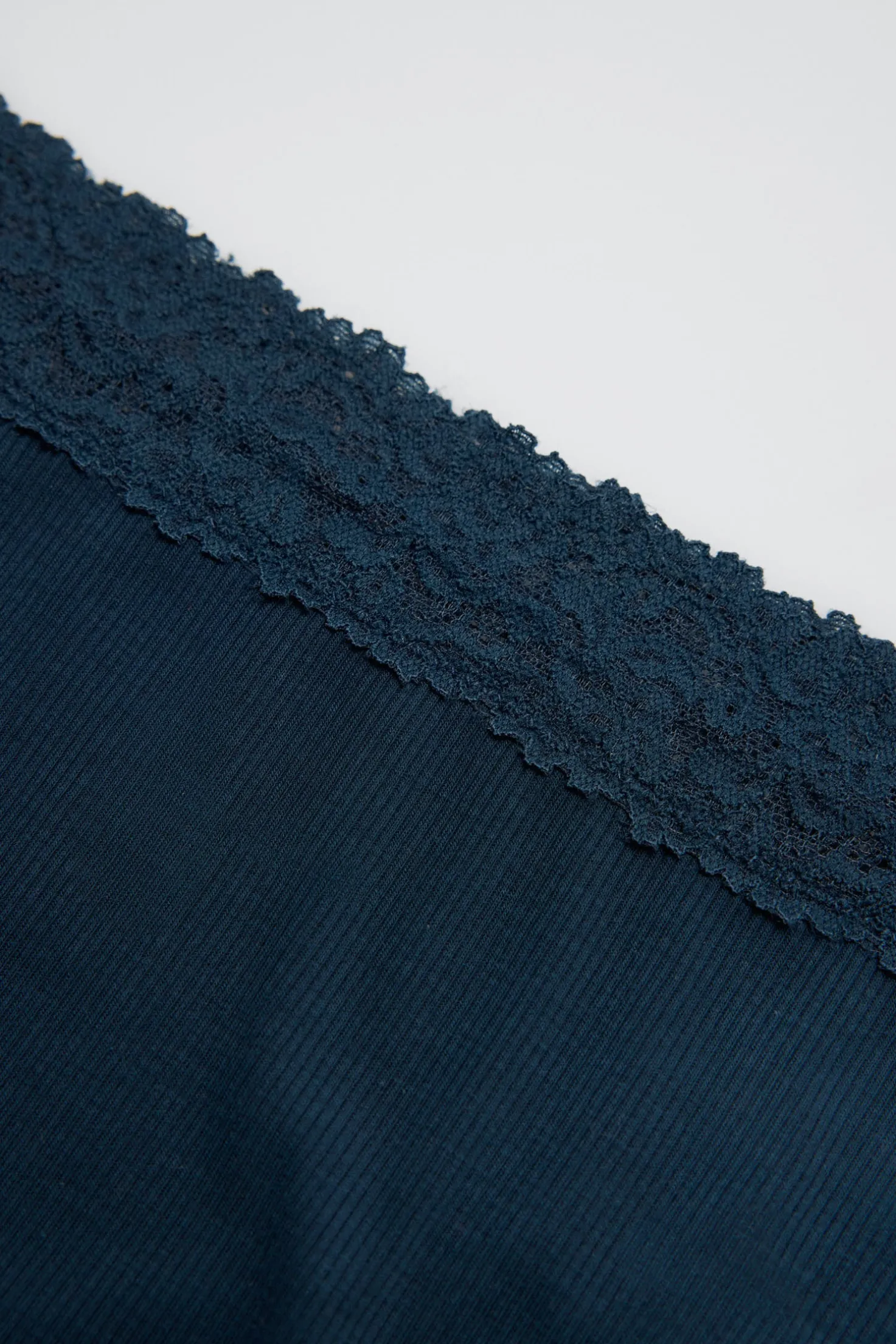 Conjunto lencero sujetador reductor y braga midi canalé marino