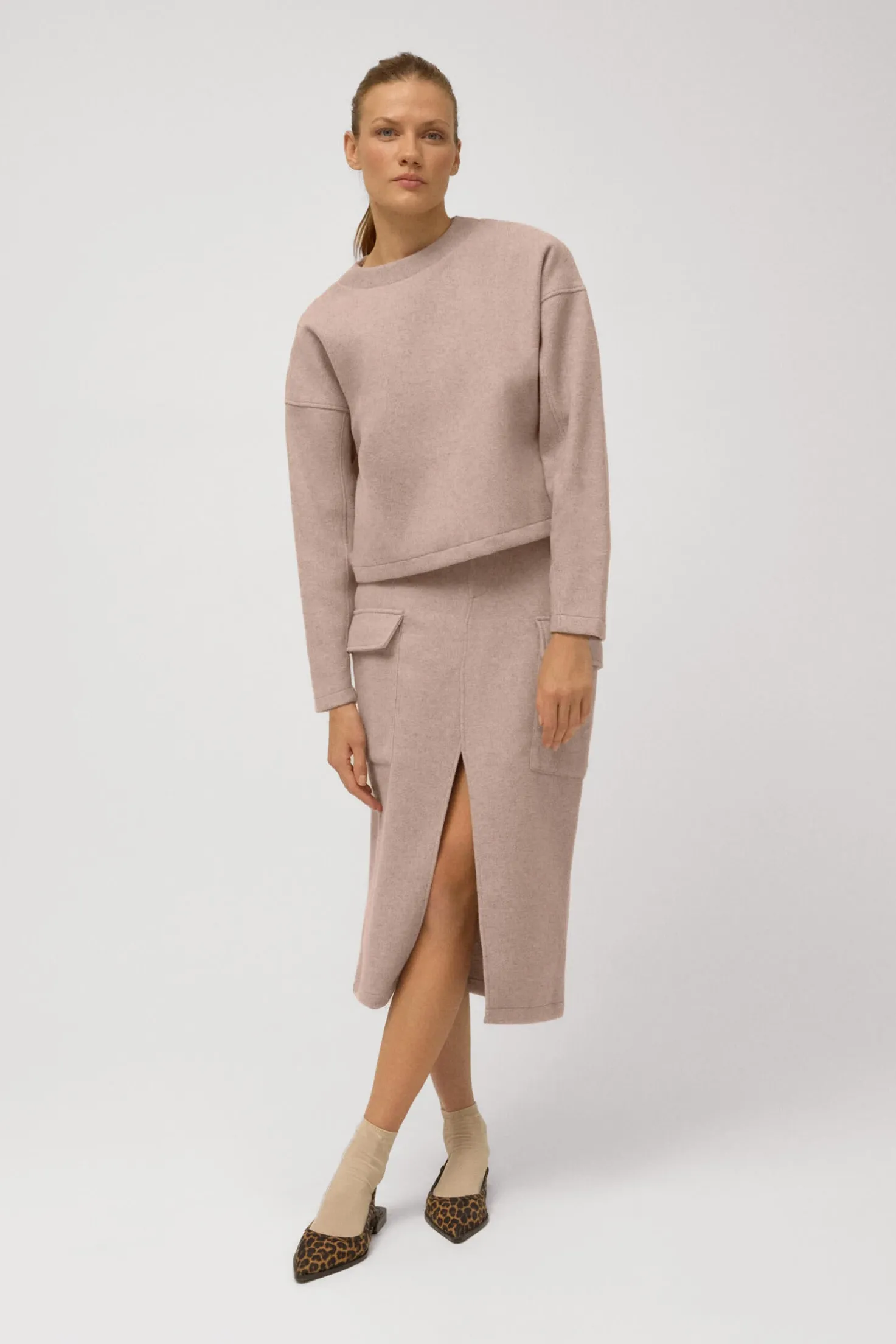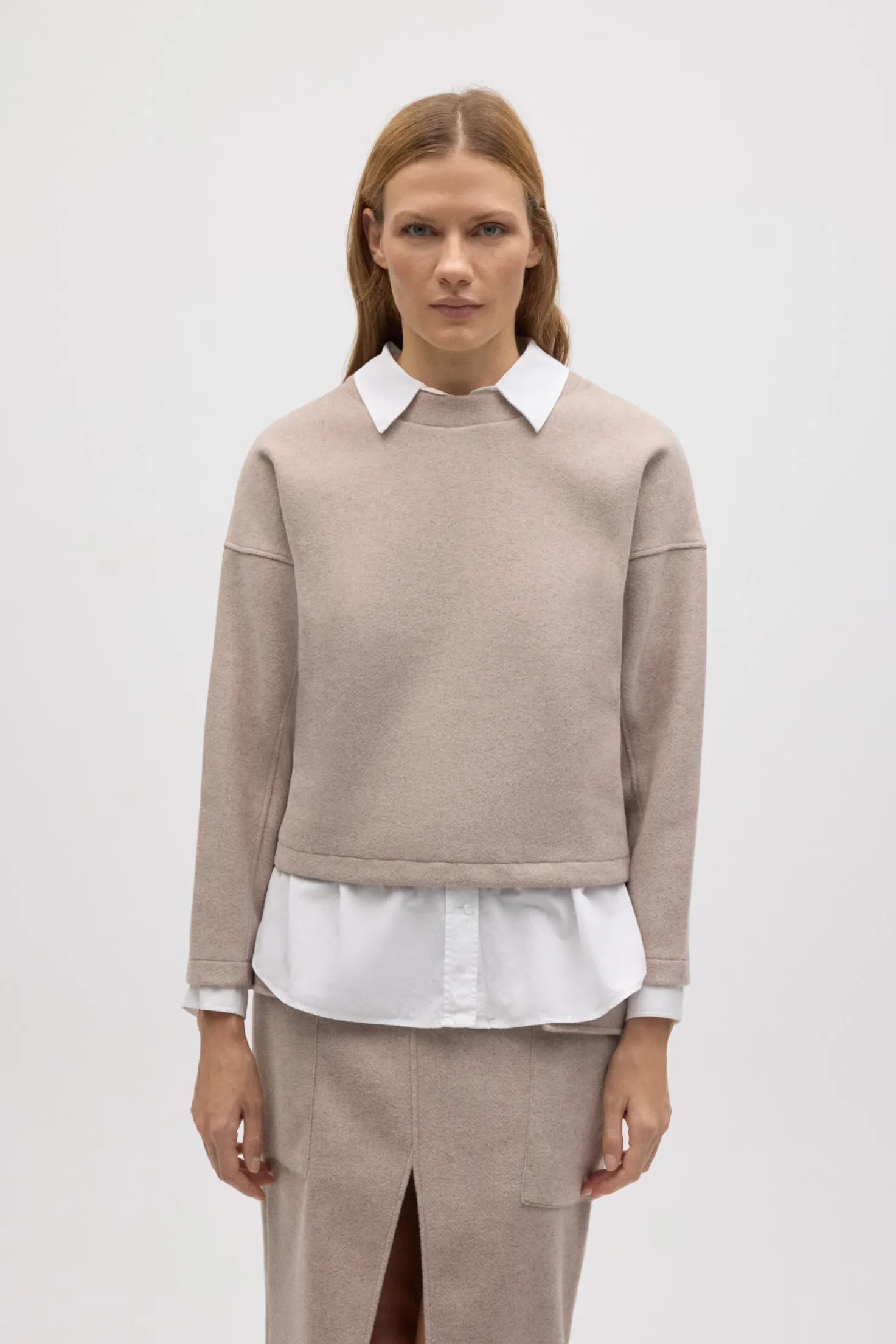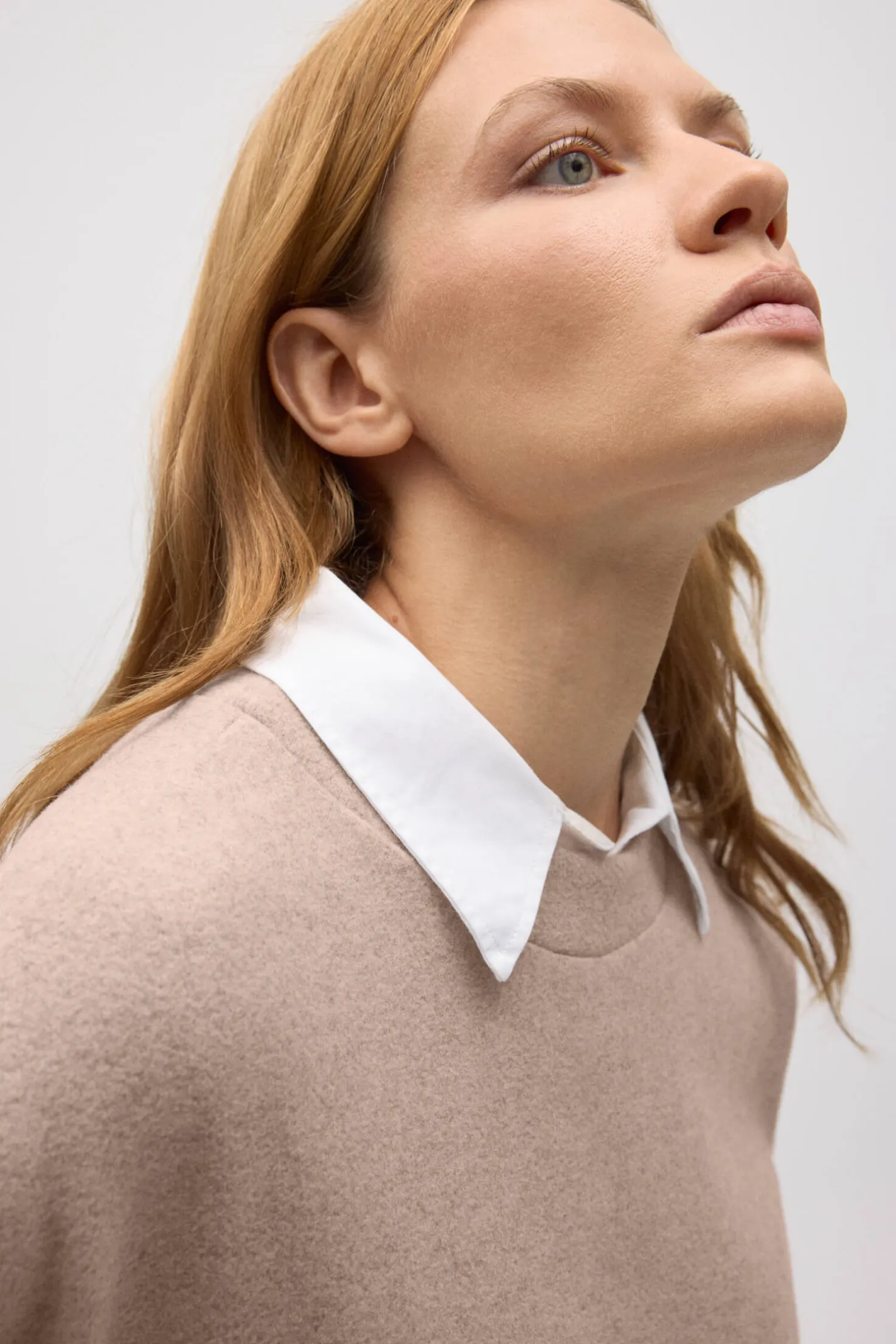 Jersey con un diseño estructurado y elegante que se adapta tanto a momentos de relax como a looks más urbanos. Este jersey de cuello redondo es perfecto para mantenerte abrigada sin perder el estilo.