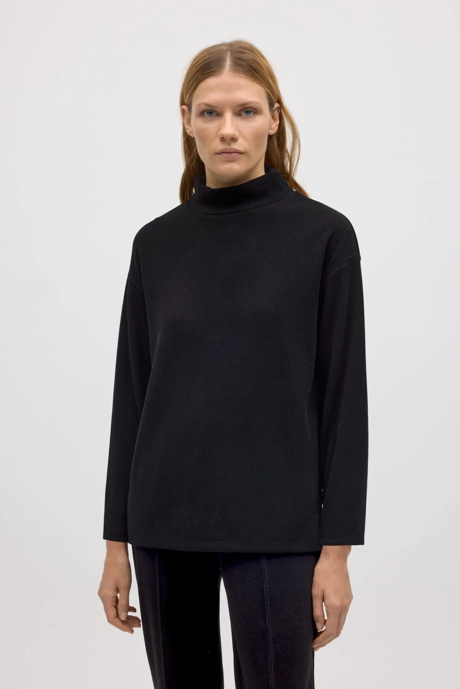 Jersey cuello perkins efecto pana cálido negro. Características