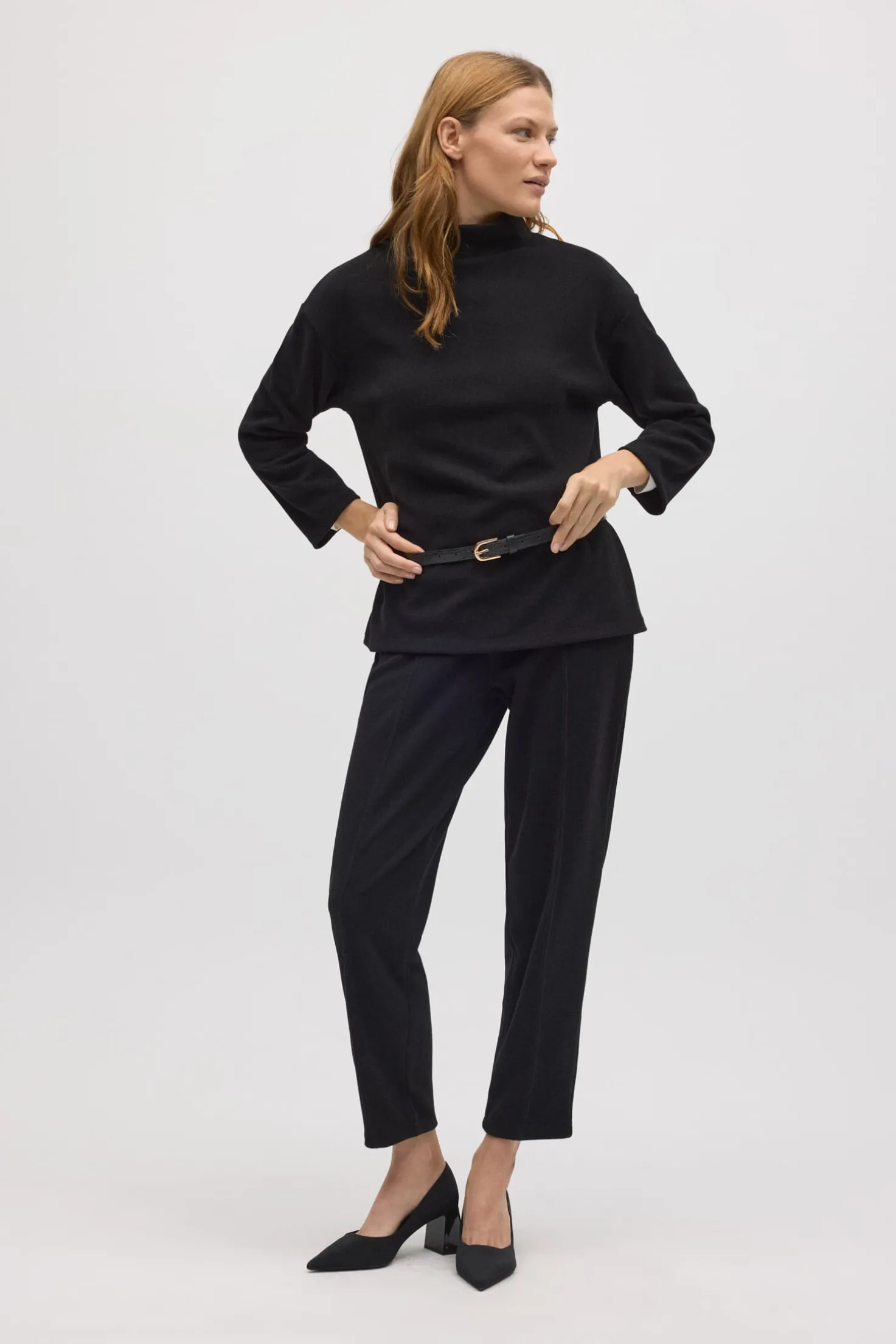 Este jersey cálido de cuello perkins con efecto pana es una prenda imprescindible para los días más fríos.