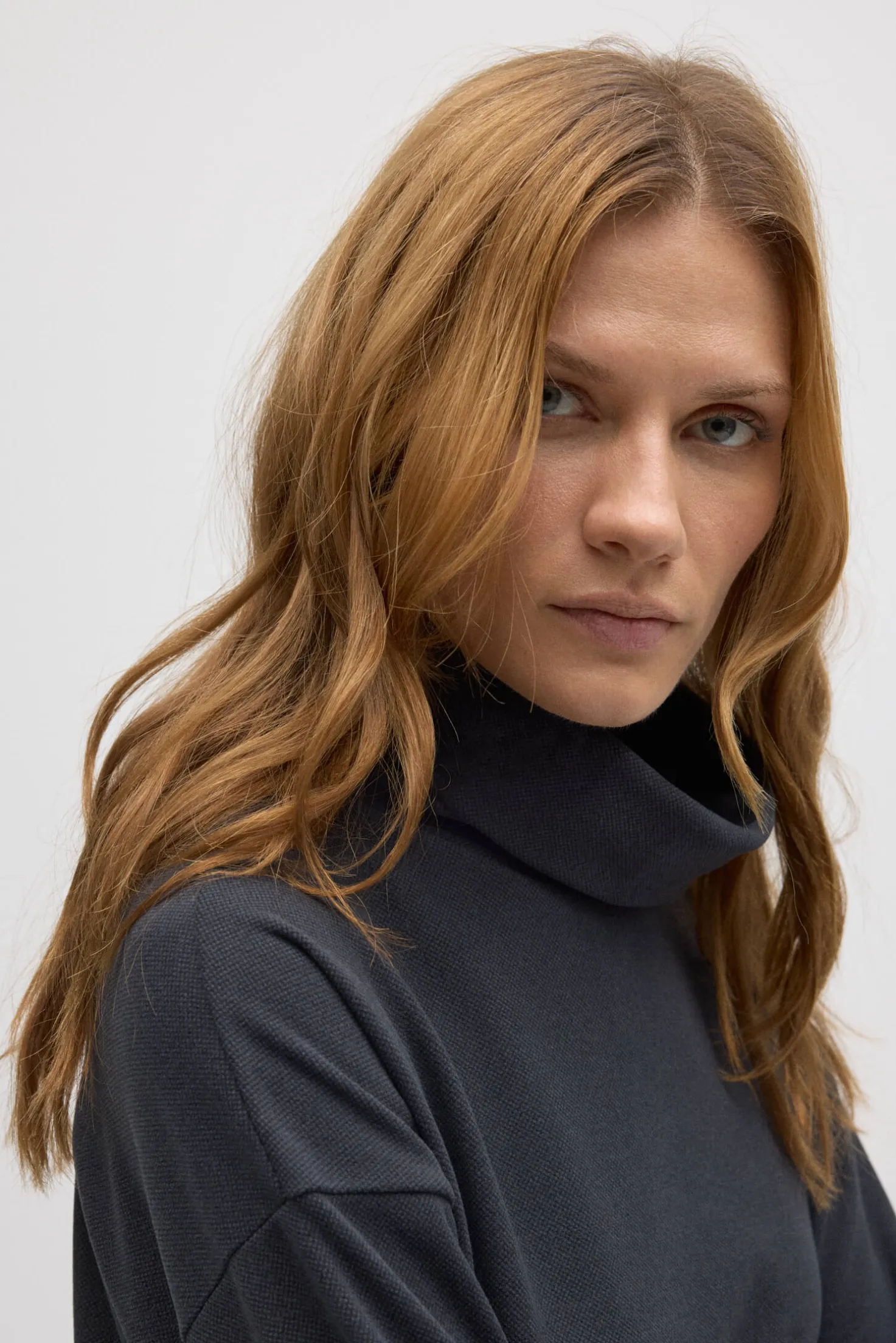 Este maxi jersey con abertura es la prenda perfecta para los días más fríos. Su diseño extralargo y su elegante textura de cuadrícula le dan un toque único, mientras que su cuello alto te ofrece el máximo abrigo. Ideal como jersey túnica, este modelo combina perfectamente con unos leggings de nuestra colección para un look sofisticado y relajado.