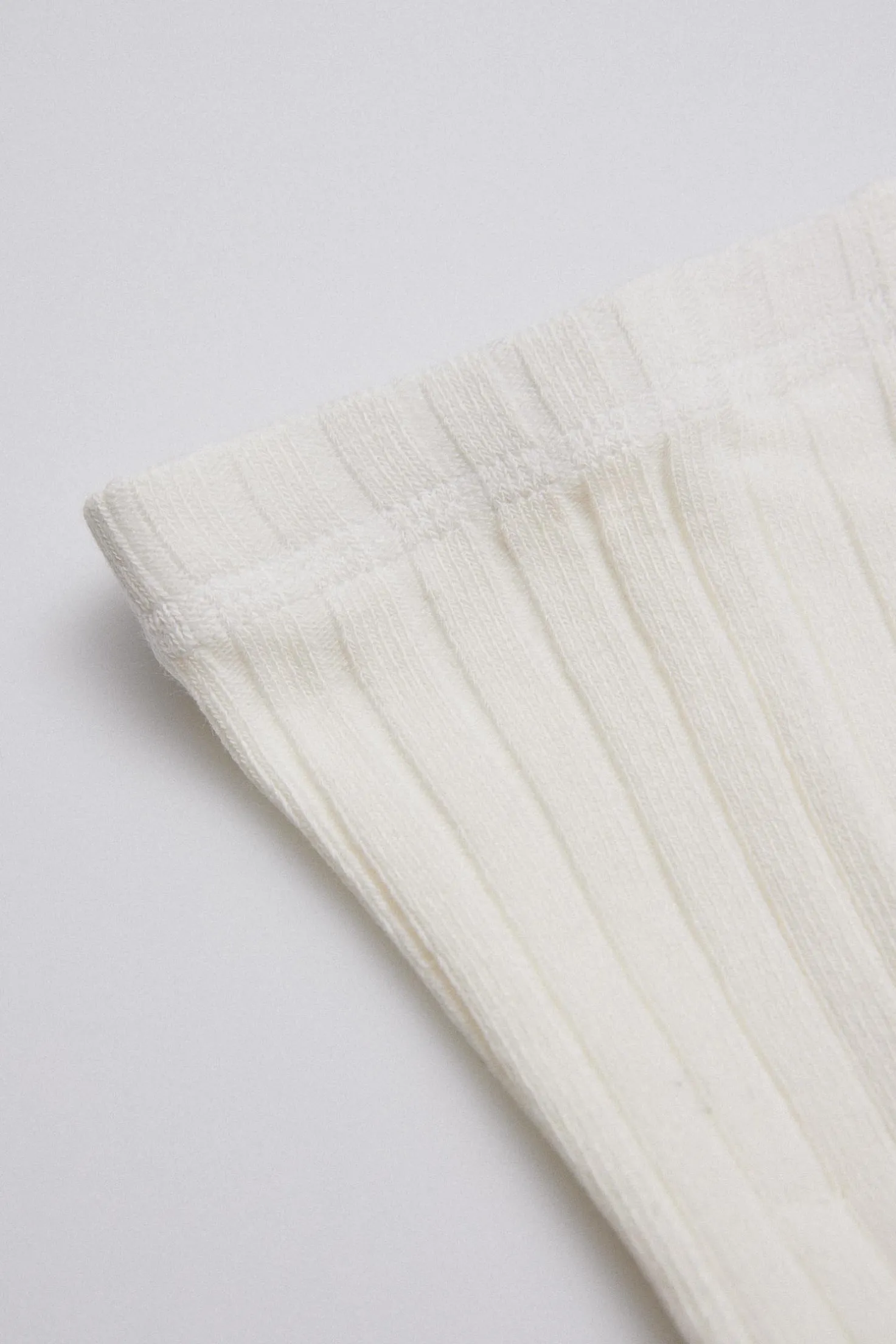 El principal objetivo de Ysabel Mora al confeccionar los leotardos de bebé en canalé es garantizar la máxima comodidad para los pequeños. Para lograrlo, se ha utilizado un suave y delicado algodón de canalé que ofrece una textura agradable al tacto y evita cualquier irritación en la piel sensible del bebé. El canalé proporciona elasticidad, lo que permite que los leotardos se ajusten de manera adecuada a la forma de las piernas del bebé sin restringir sus movimientos naturales.