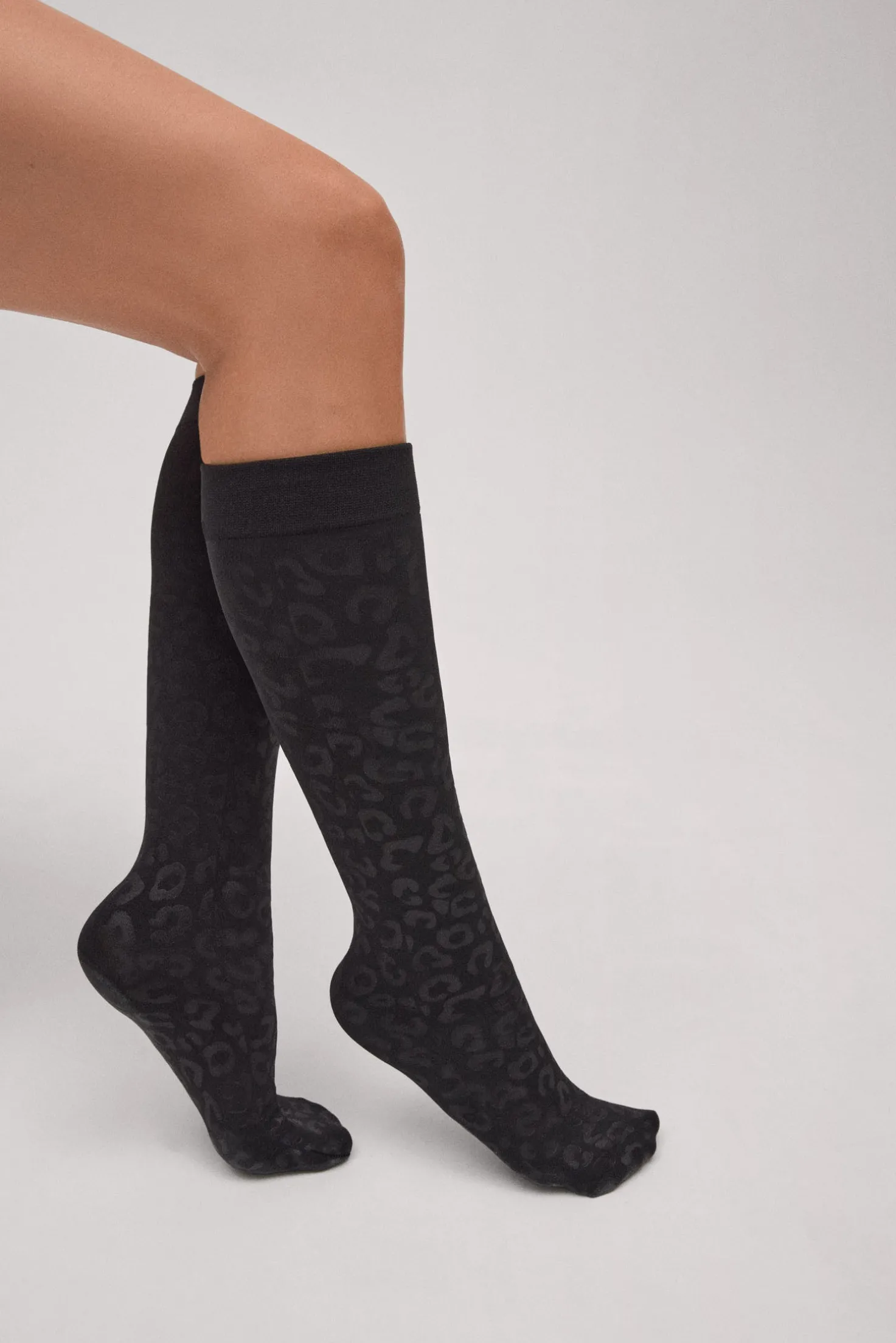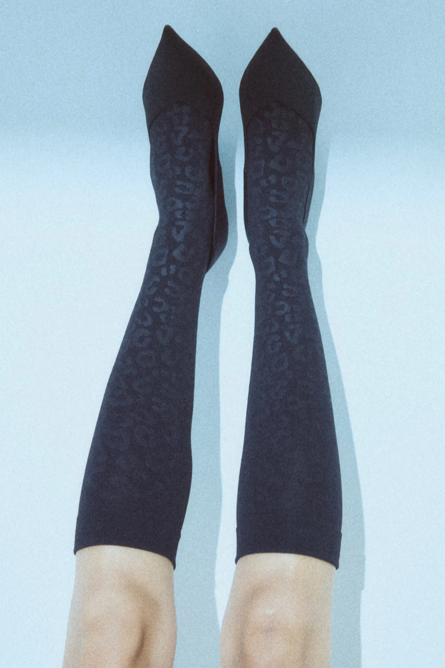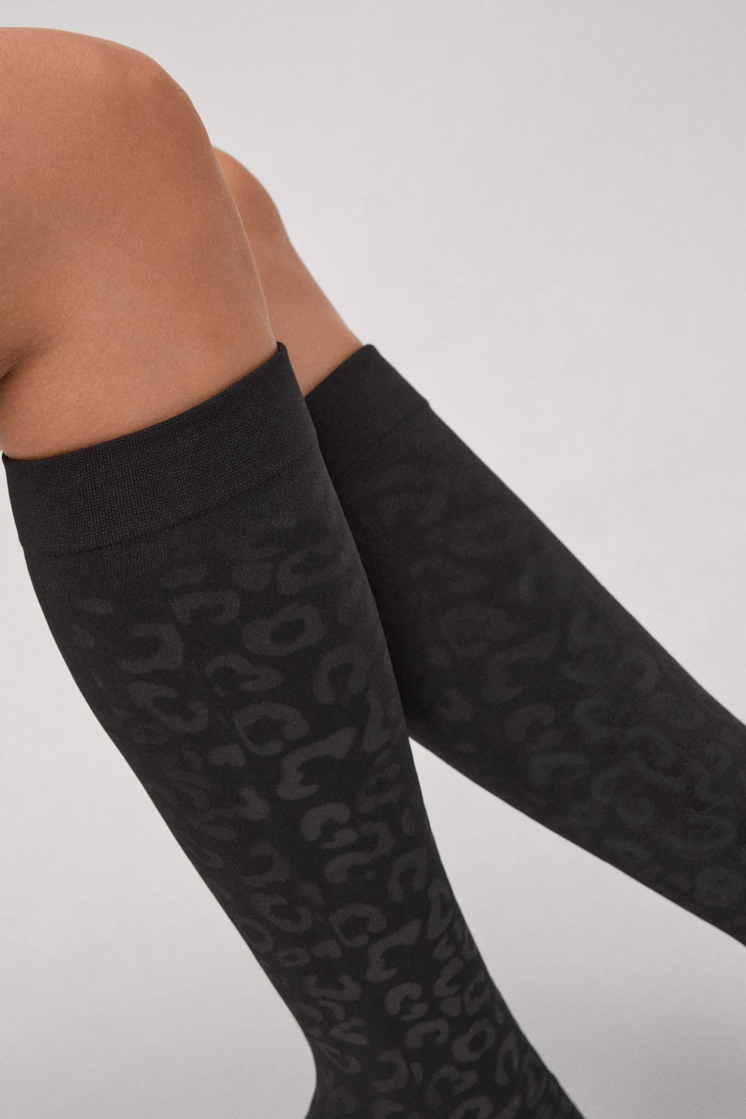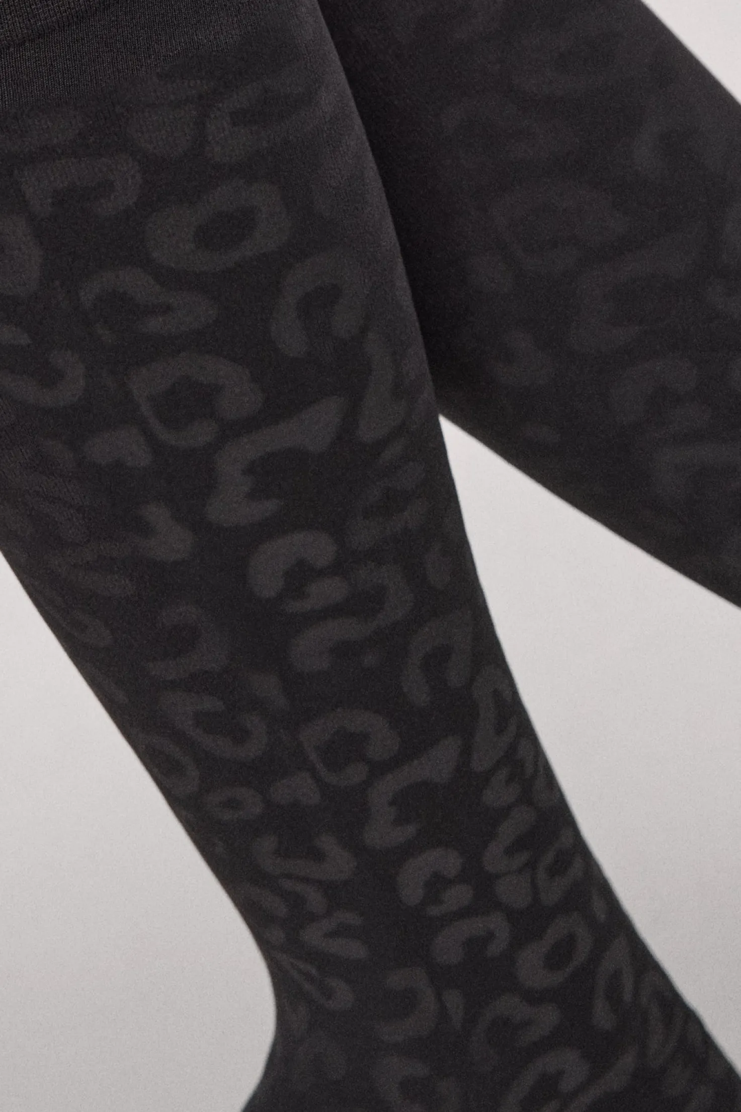 Mini media térmica estampado animal print de leopardo 140 deniers.