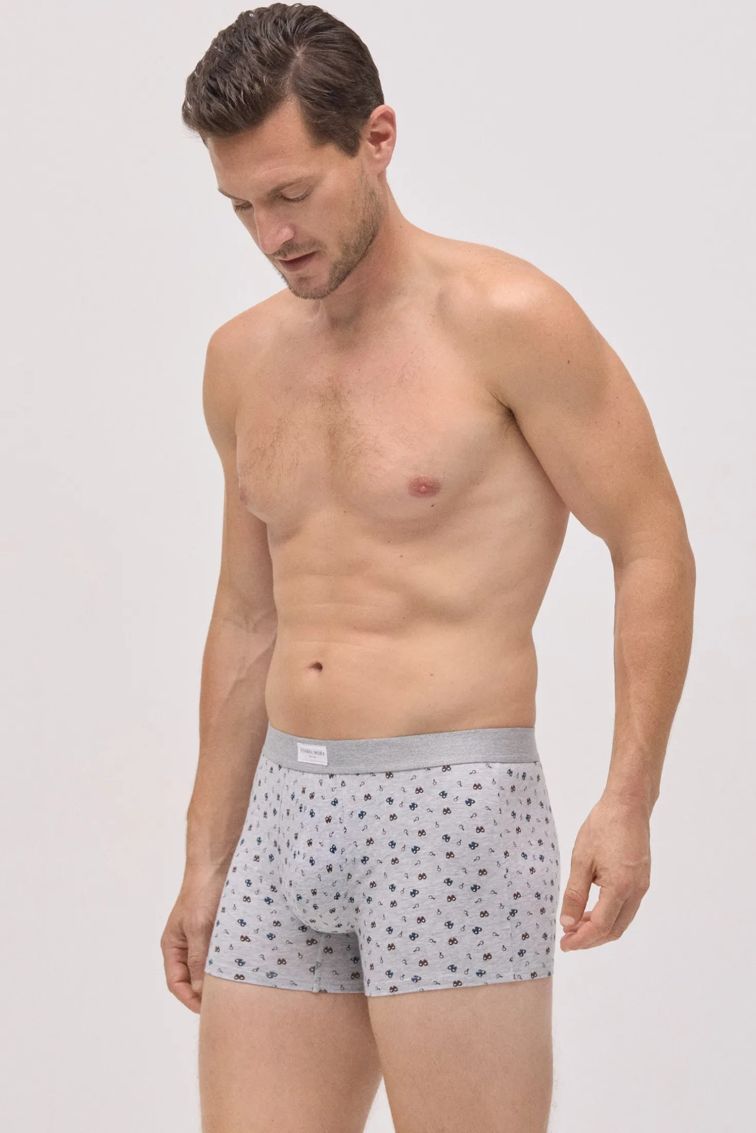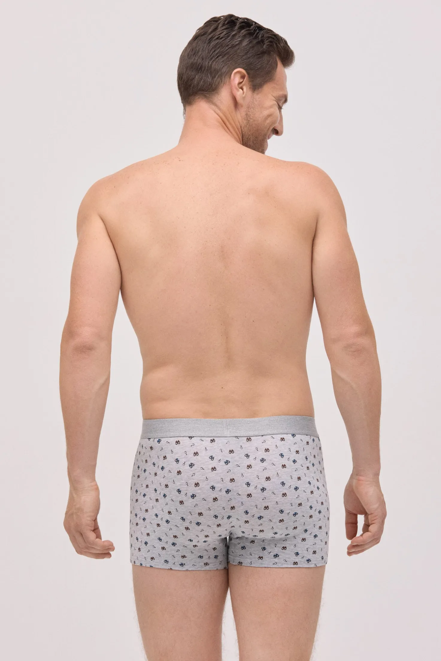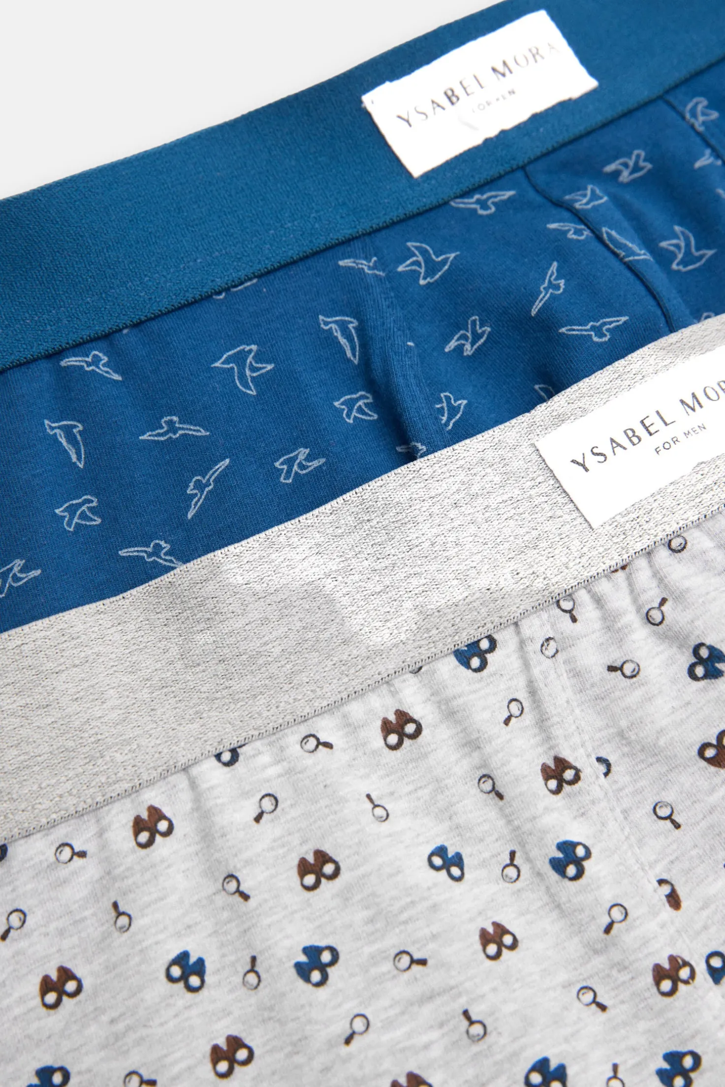 Pack de 2 bóxers estampados confeccionados en algodón natural con un toque de elastano para un confort óptimo. Cada calzoncillo presenta un color y estampado distinto, aportando variedad y personalidad al fondo de armario.