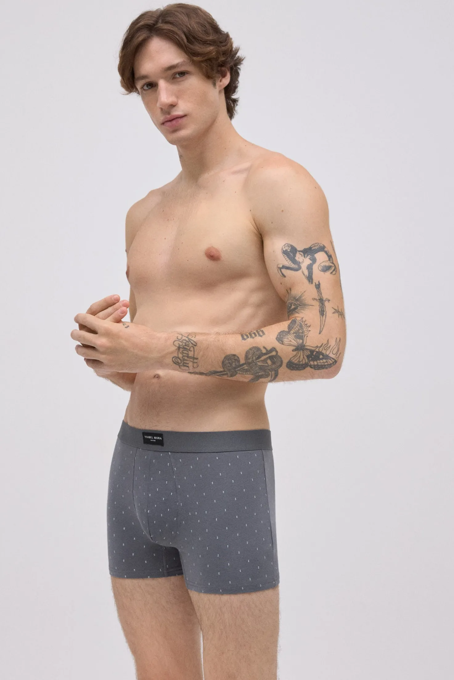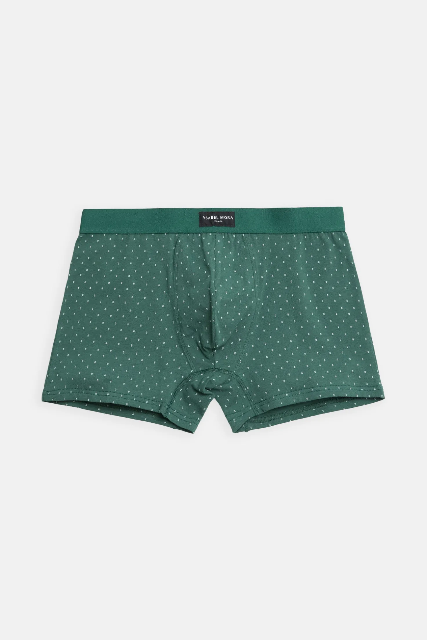 Pack de 2 bóxeres estampados de Ysabel Mora confeccionados en algodón natural. Cada modelo presenta un color y estampado minimalista diferente: uno en verde botella y otro en gris.