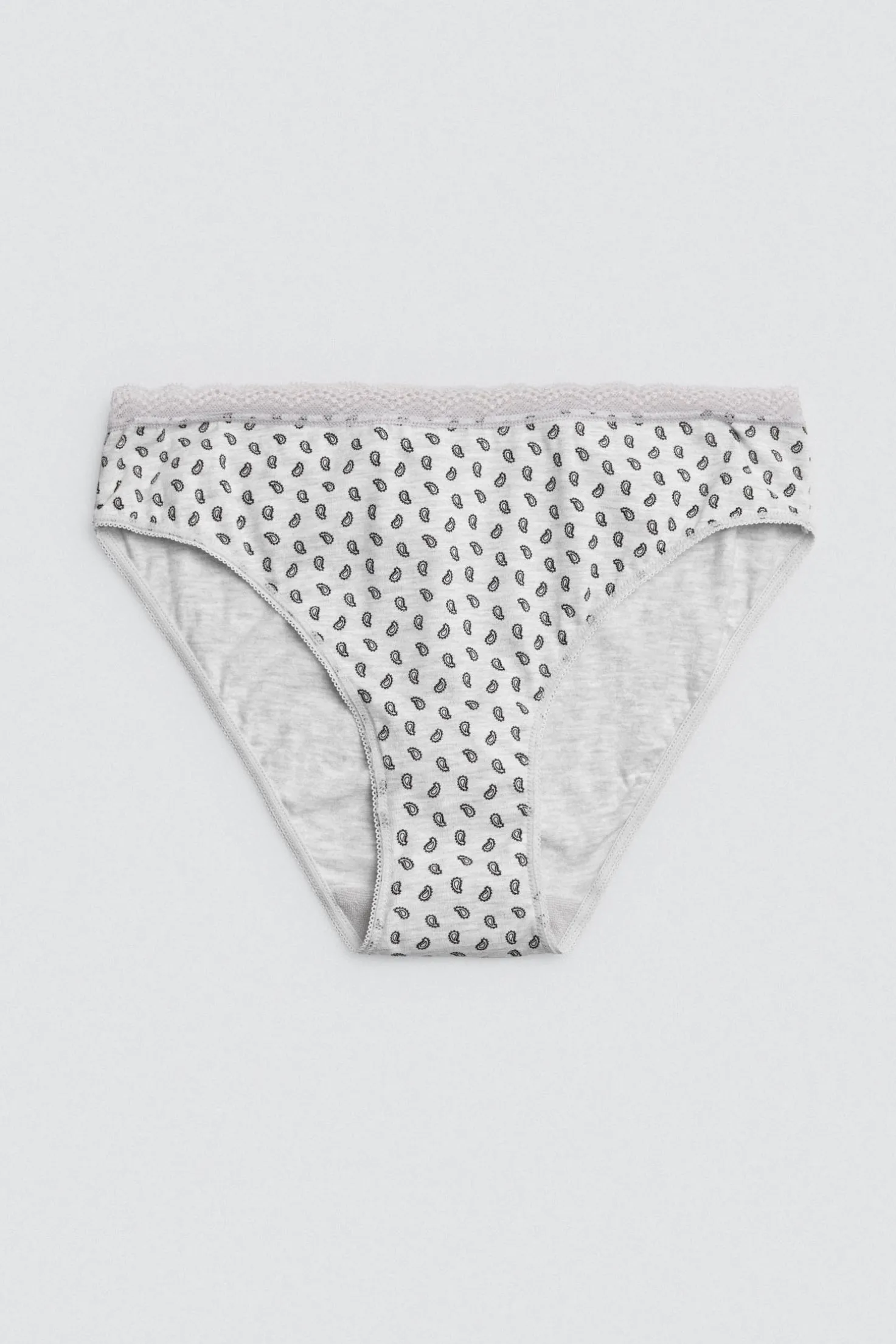 Pack de 2 bragas midi estampadas confeccionadas en algodón natural para un ajuste suave y cómodo. Cada prenda incluye un estampado distinto y un delicado acabado en el borde superior con puntilla decorativa, que añade feminidad sin perder funcionalidad. Ideales para el uso diario, con un plus de estilo.