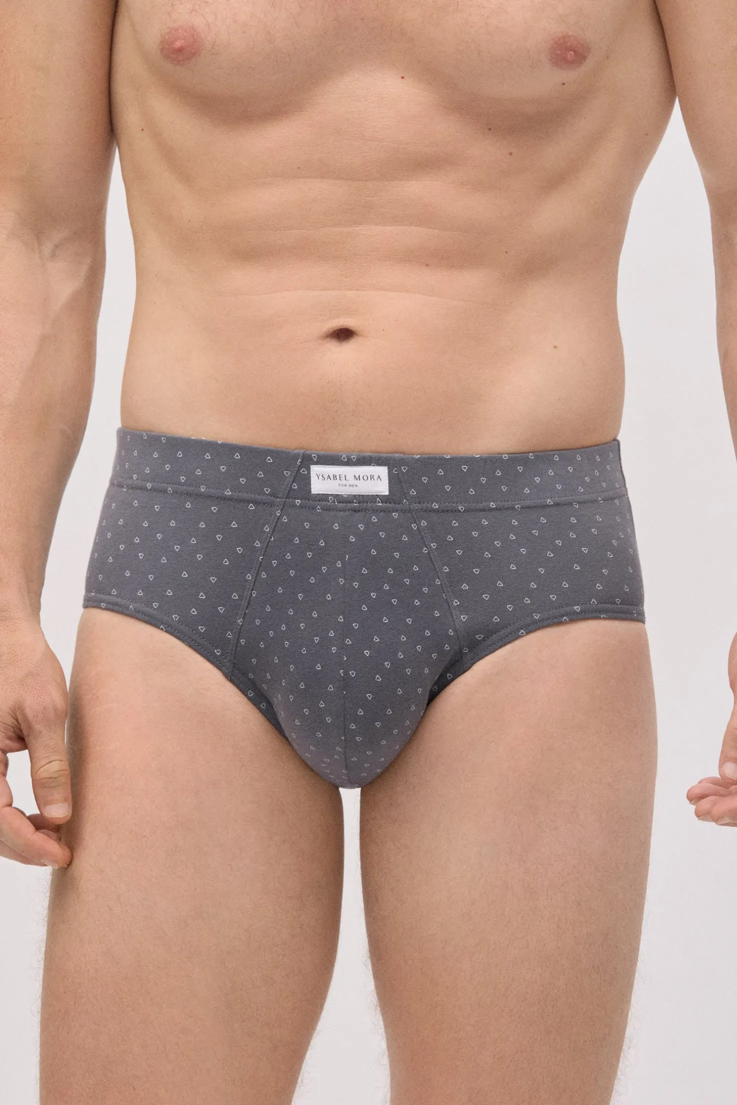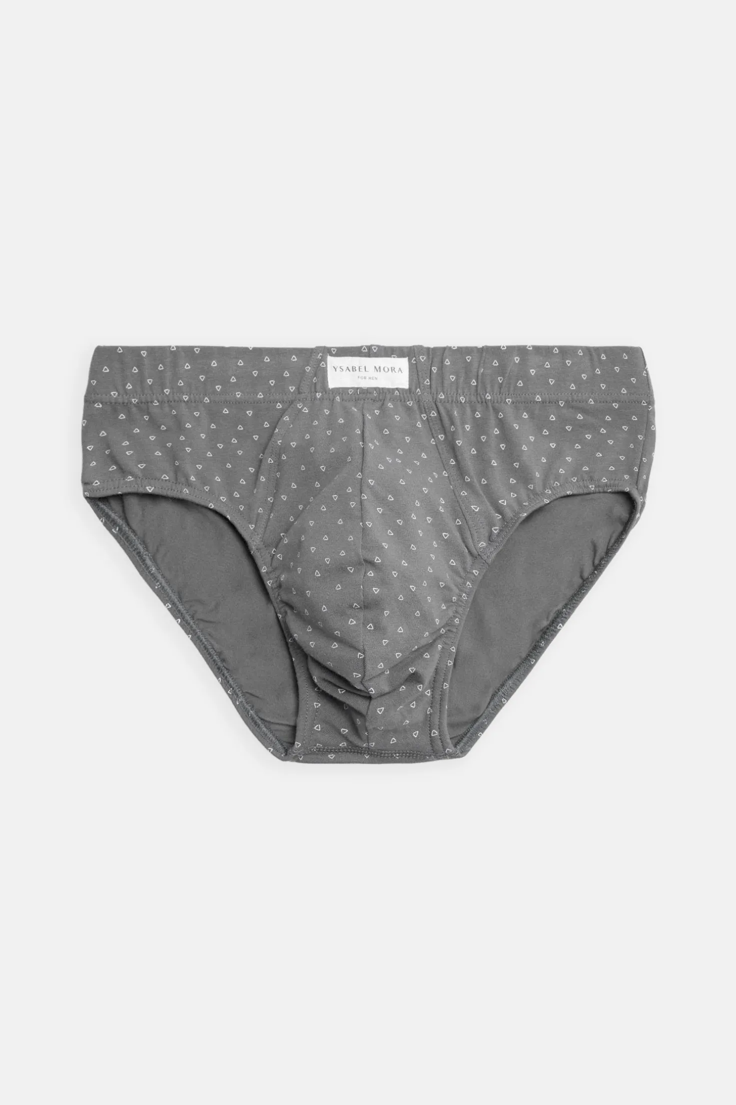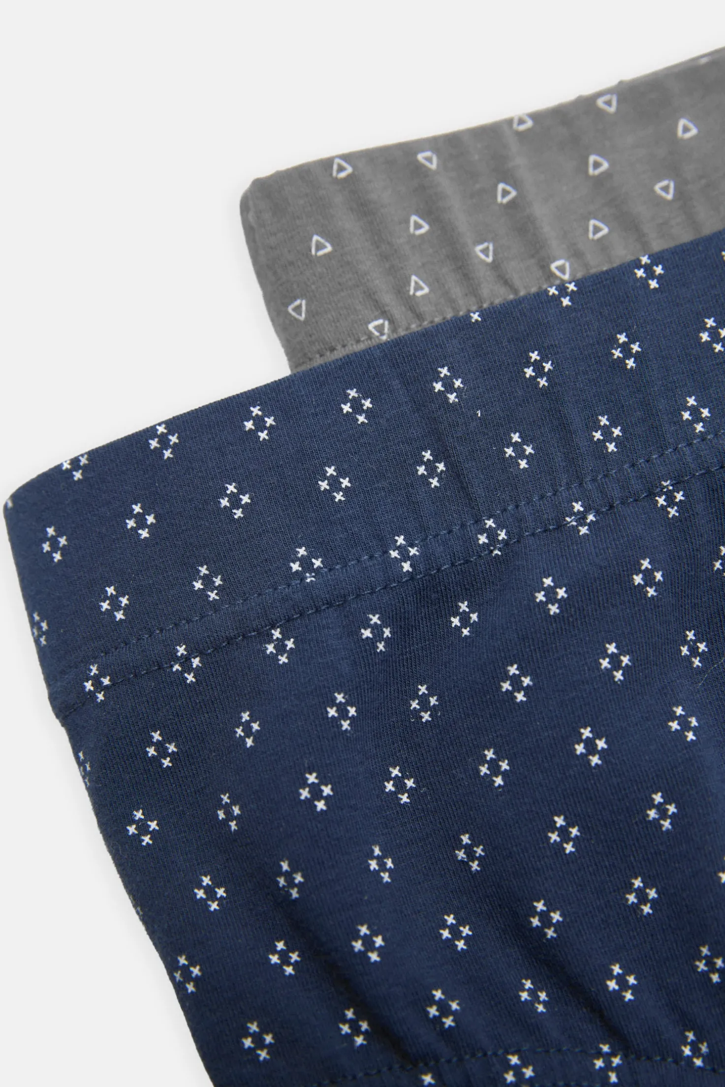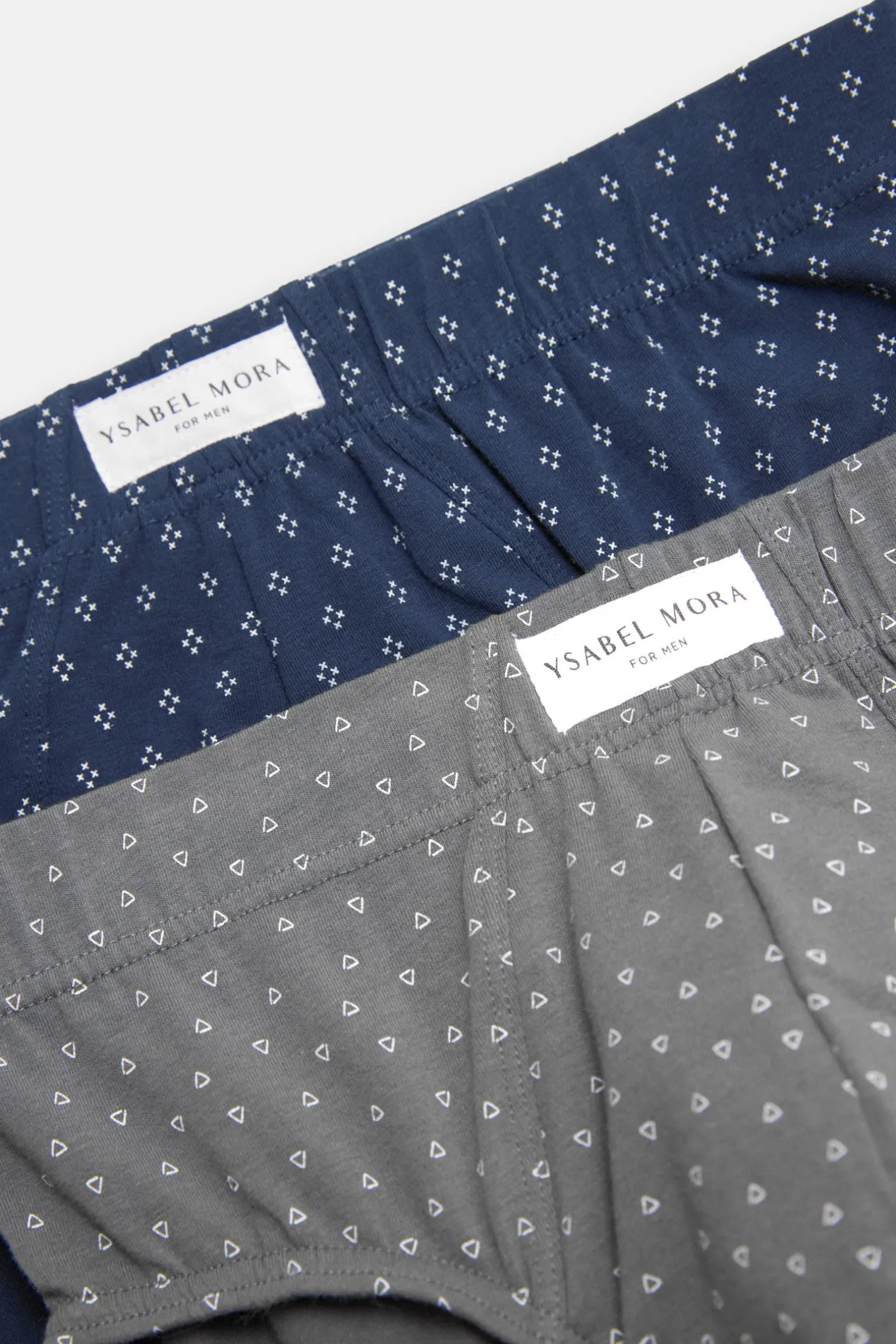 Pack de 2 slips estampados confeccionados en algodón natural. Cada modelo presenta un color y un estampado diferente: uno en gris y otro en azul marino. La cinturilla elástica aporta sujeción y un acabado funcional para el día a día.