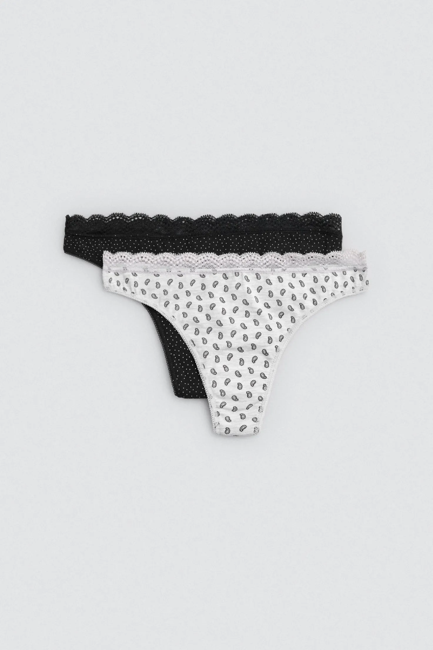 Pack de 2 tangas estampados con detalle de puntilla