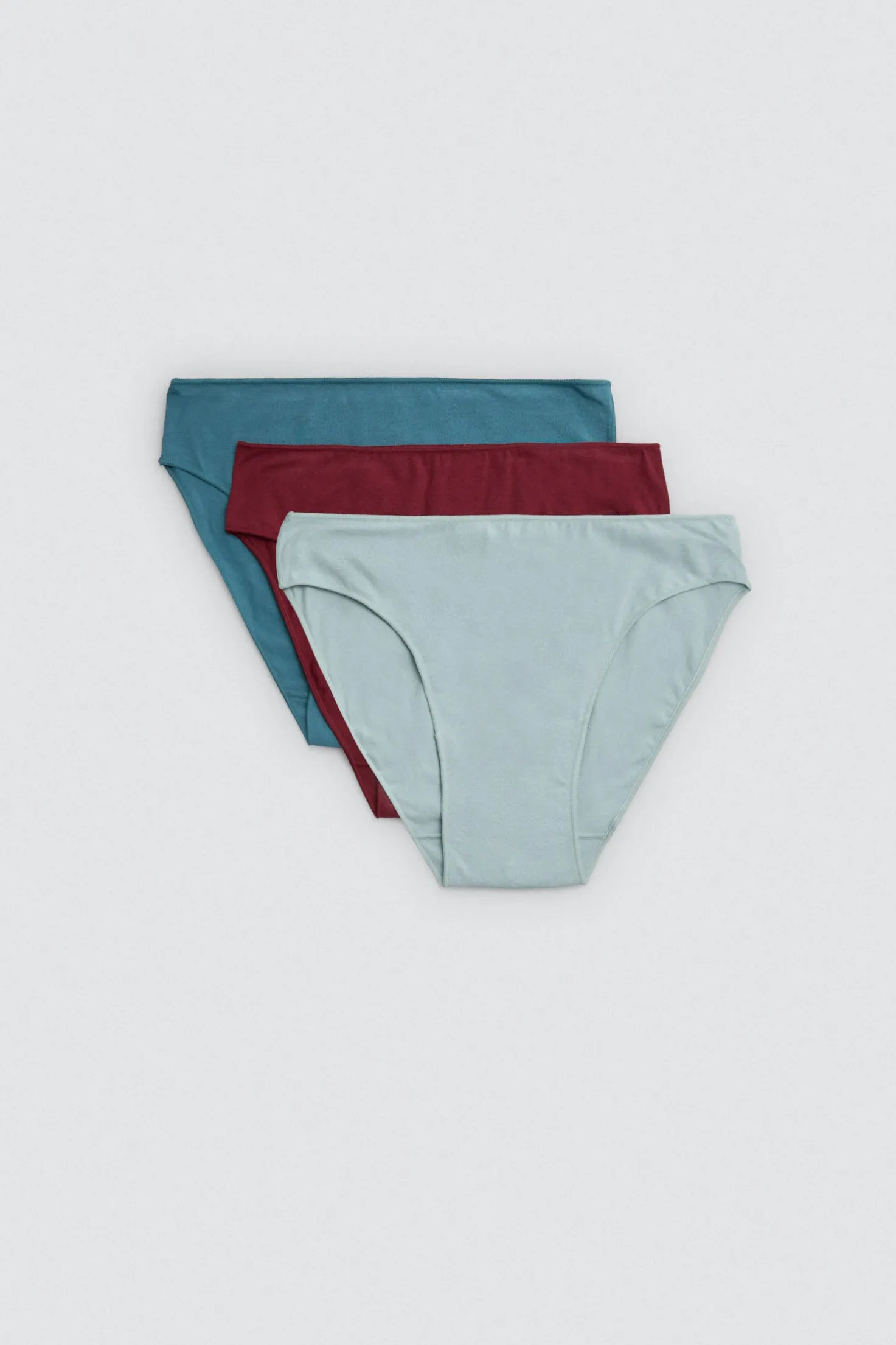 Pack de 3 bragas midi básicas de algodón para mujer. Incluye una de cada color.