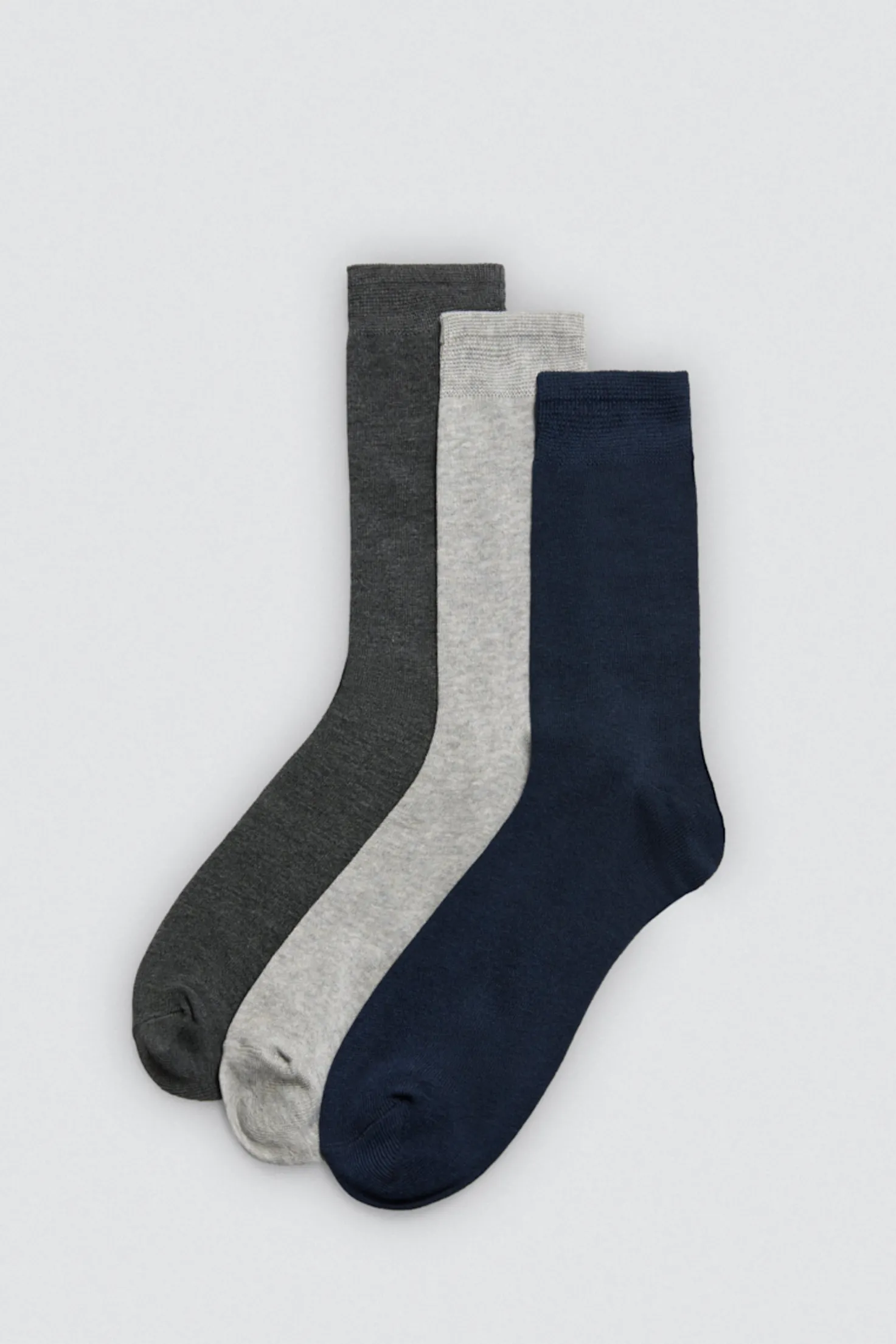 Pack de 3 calcetines altos lisos de bambú con puño antipresión