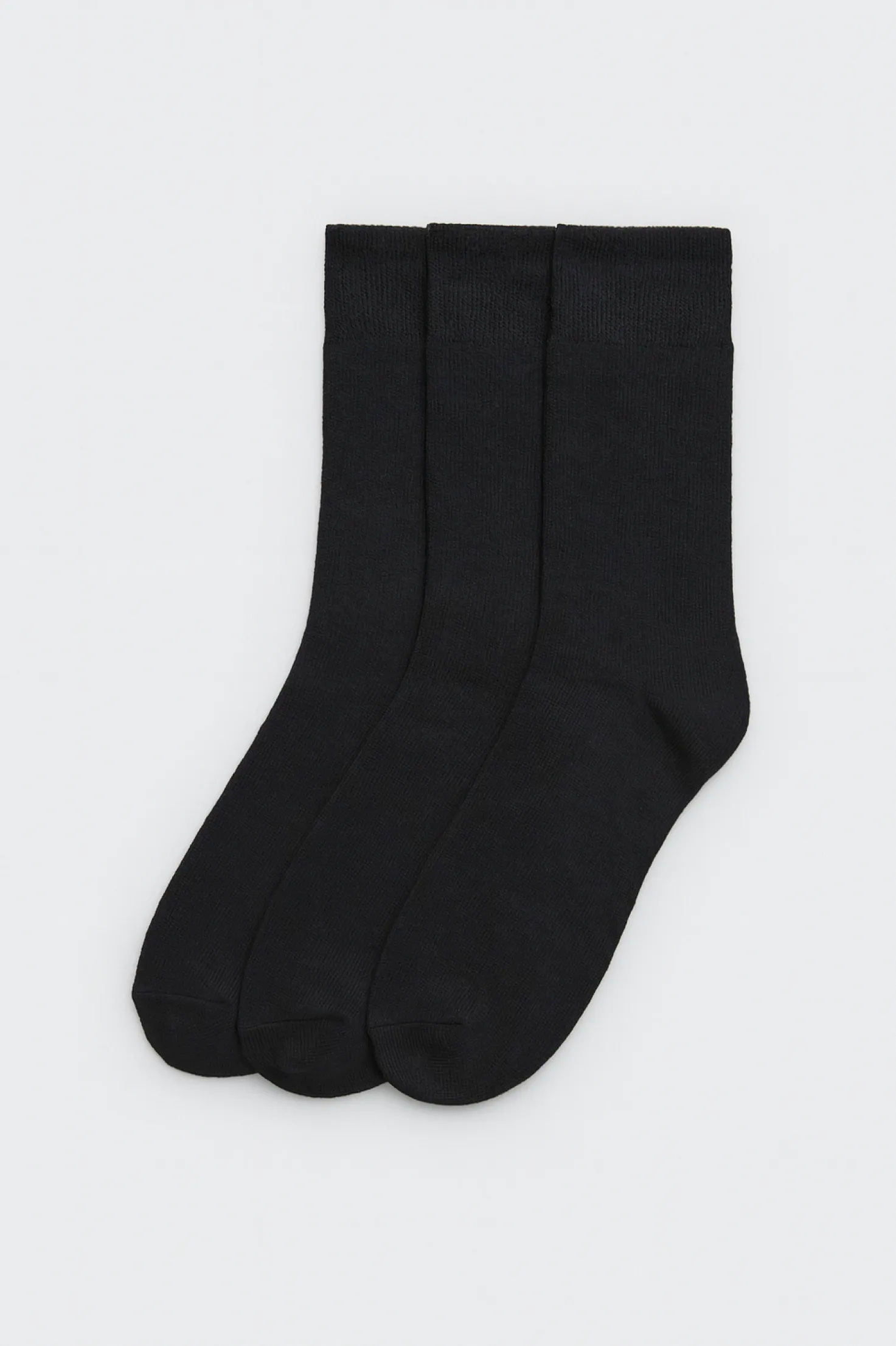 Pack de 3 pares de calcetines de bambú cálidos en color negro para mujer. El bambú es una fibra natural transpirable, antiolores, suave y cómoda. Puño antipresión.