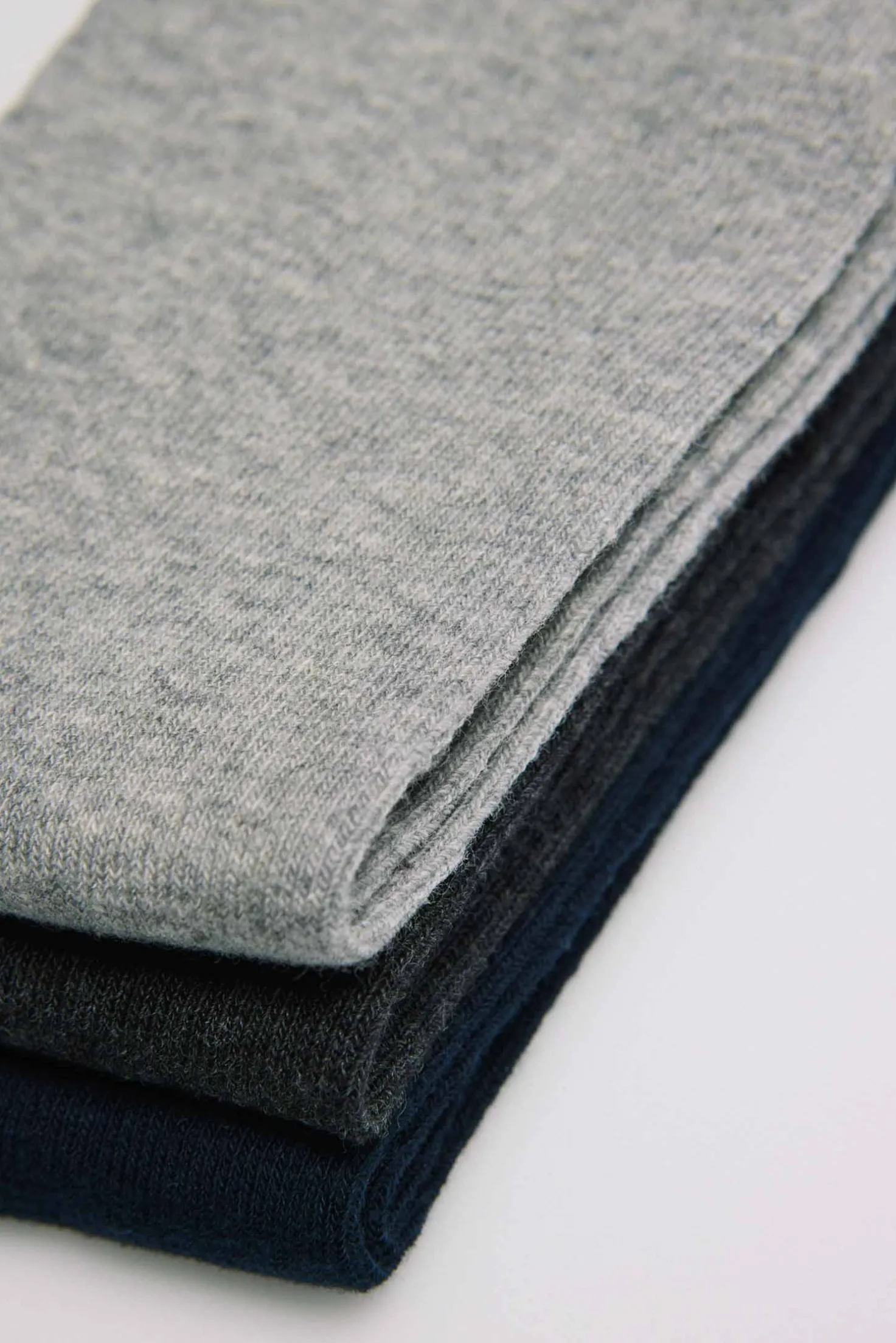 Pack de 3 pares de calcetines para mujer. Confeccionados con algodón y sin puño antipresión. Comodidad para el día a día. Incluye un par de cada color: marino, gris marengo y gris claro.