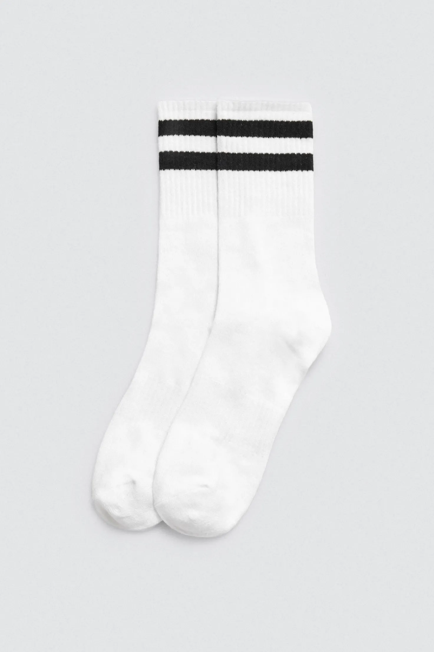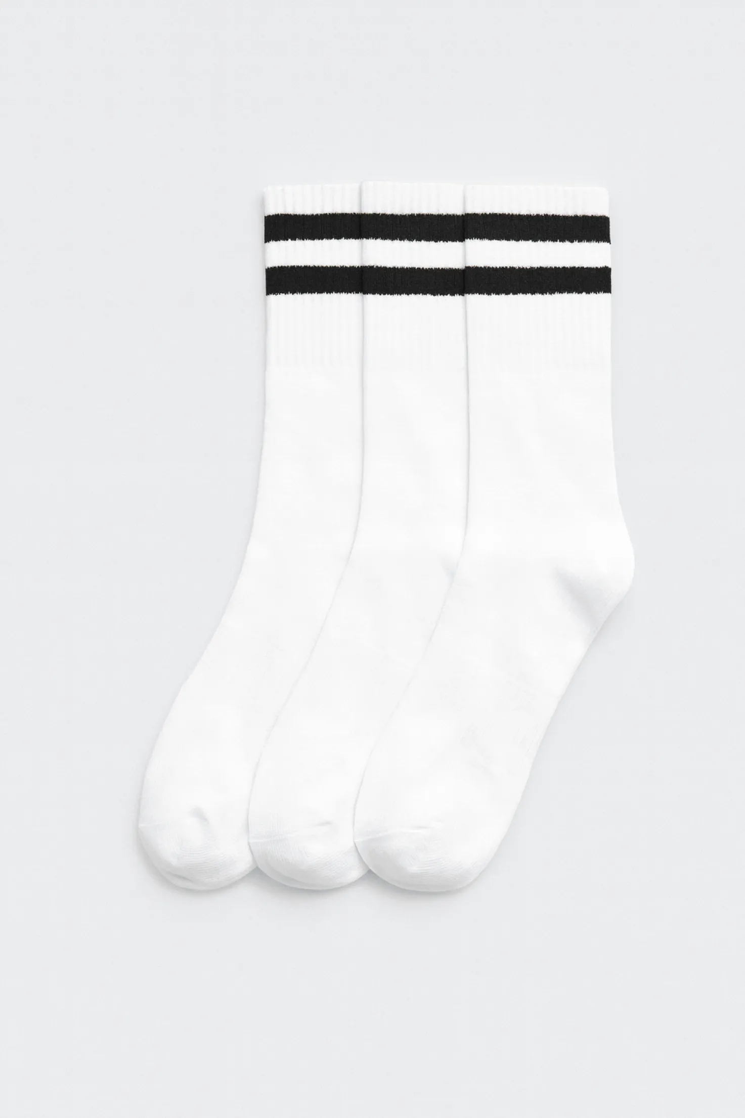 Pack 3 pares de calcetines deportivos puño a rayas blanco.