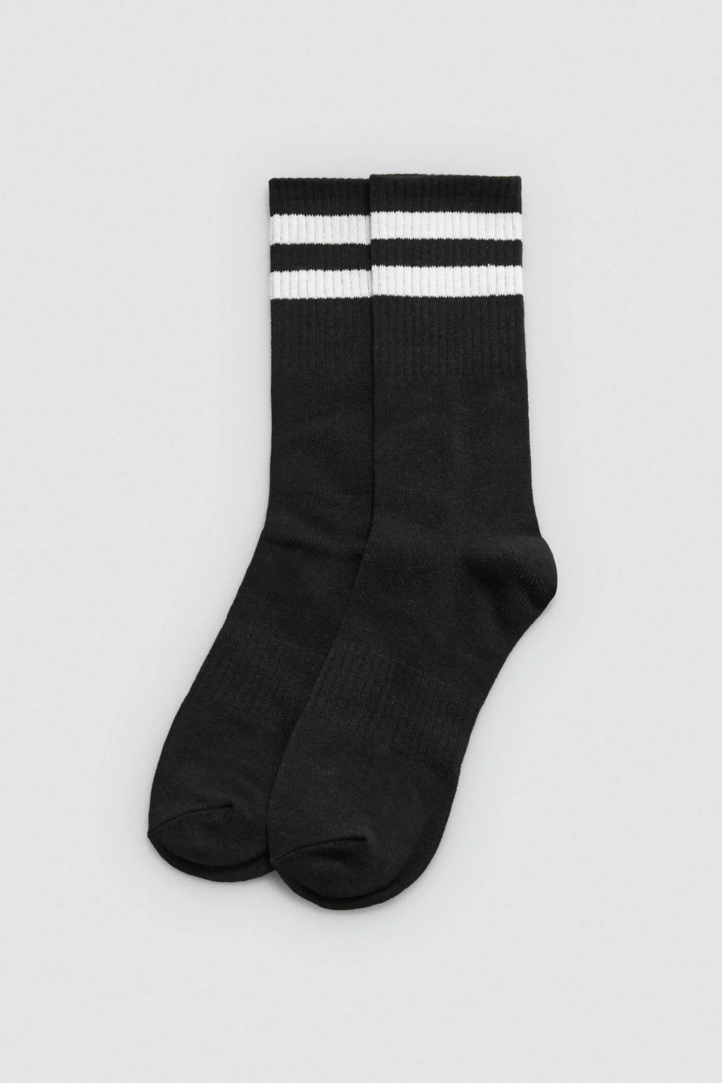 Calcetines deportivos largos con puño a rayas negros. Pack de 3 pares.